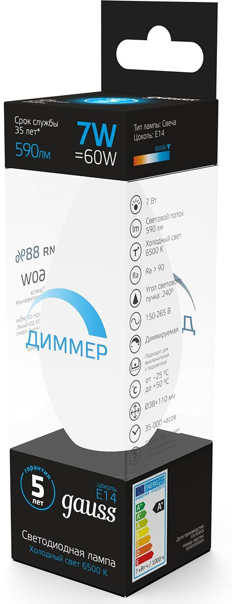 - Ссылка на сайт поставщика/вендораhttps://b2b.gauss.ru/catalog/upravlyaemye-lampy/lampa-gauss-svecha-7w-590lm-6500k-e14-dimmiruemaya-led-1-10-100/