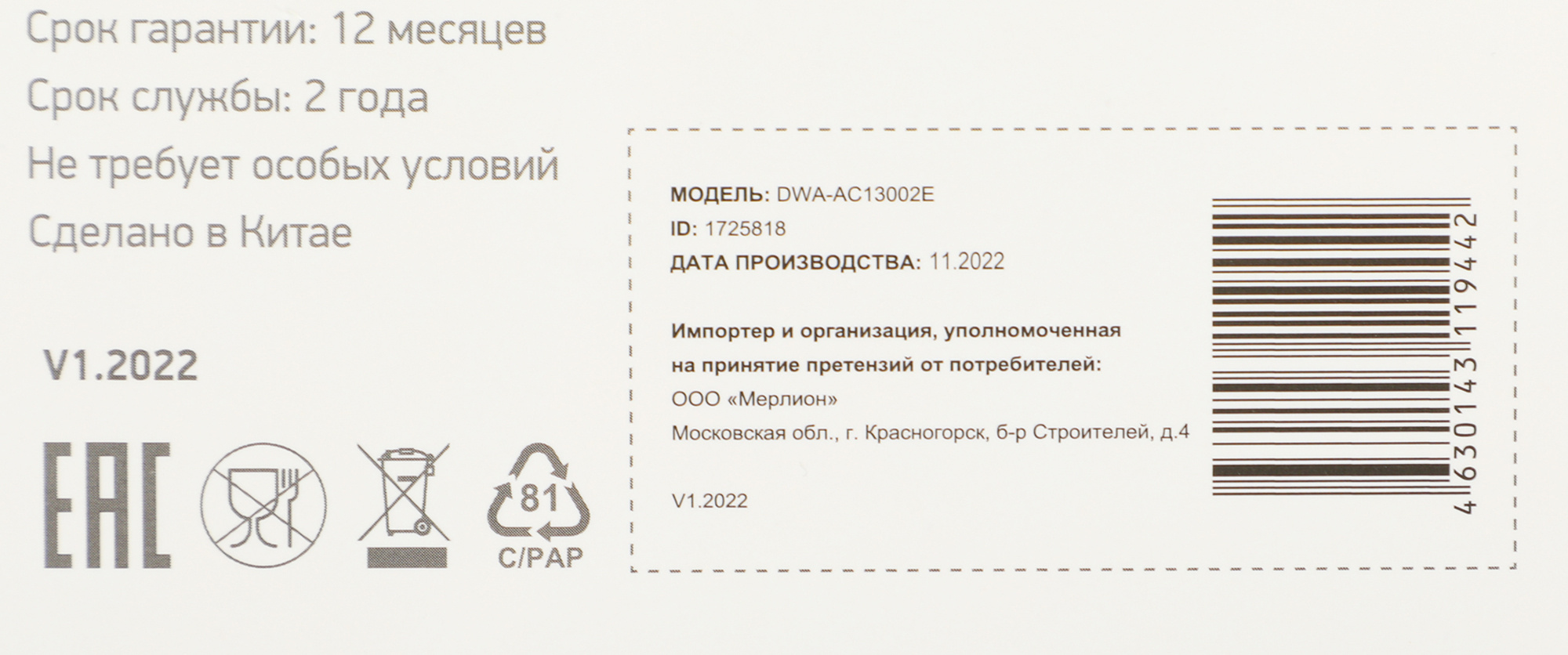 - PartNumber/Артикул ПроизводителяDWA-AC13002E