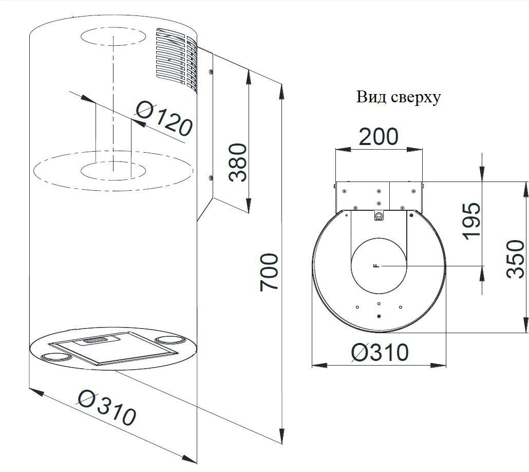 Вытяжка каминная Weissgauff Tubus 700 PB WH белый управление: кнопочное (1 мотор)