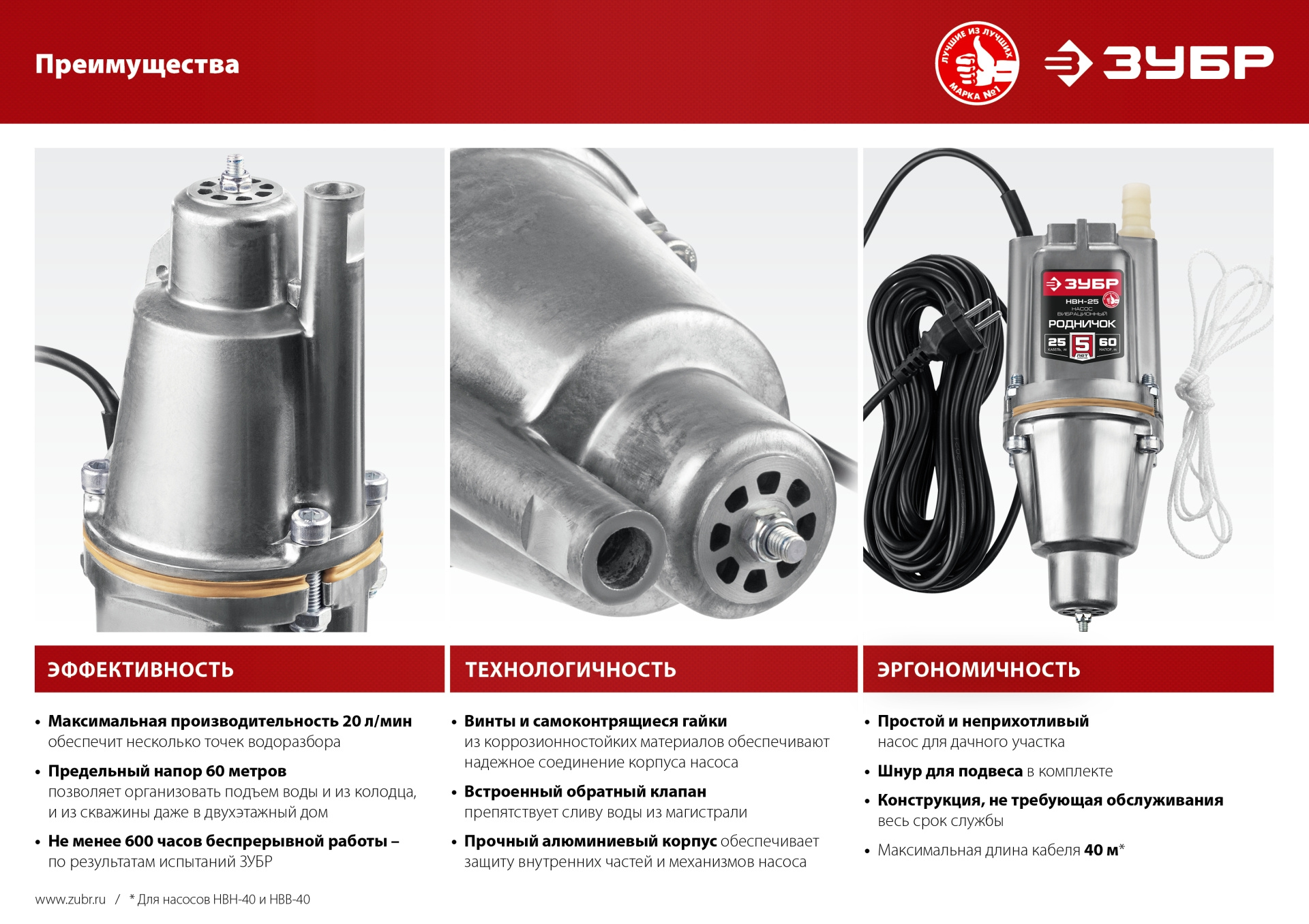 Насос садовый Зубр Родничок-Н НВН-25 240Вт 1200л/час вибрационный