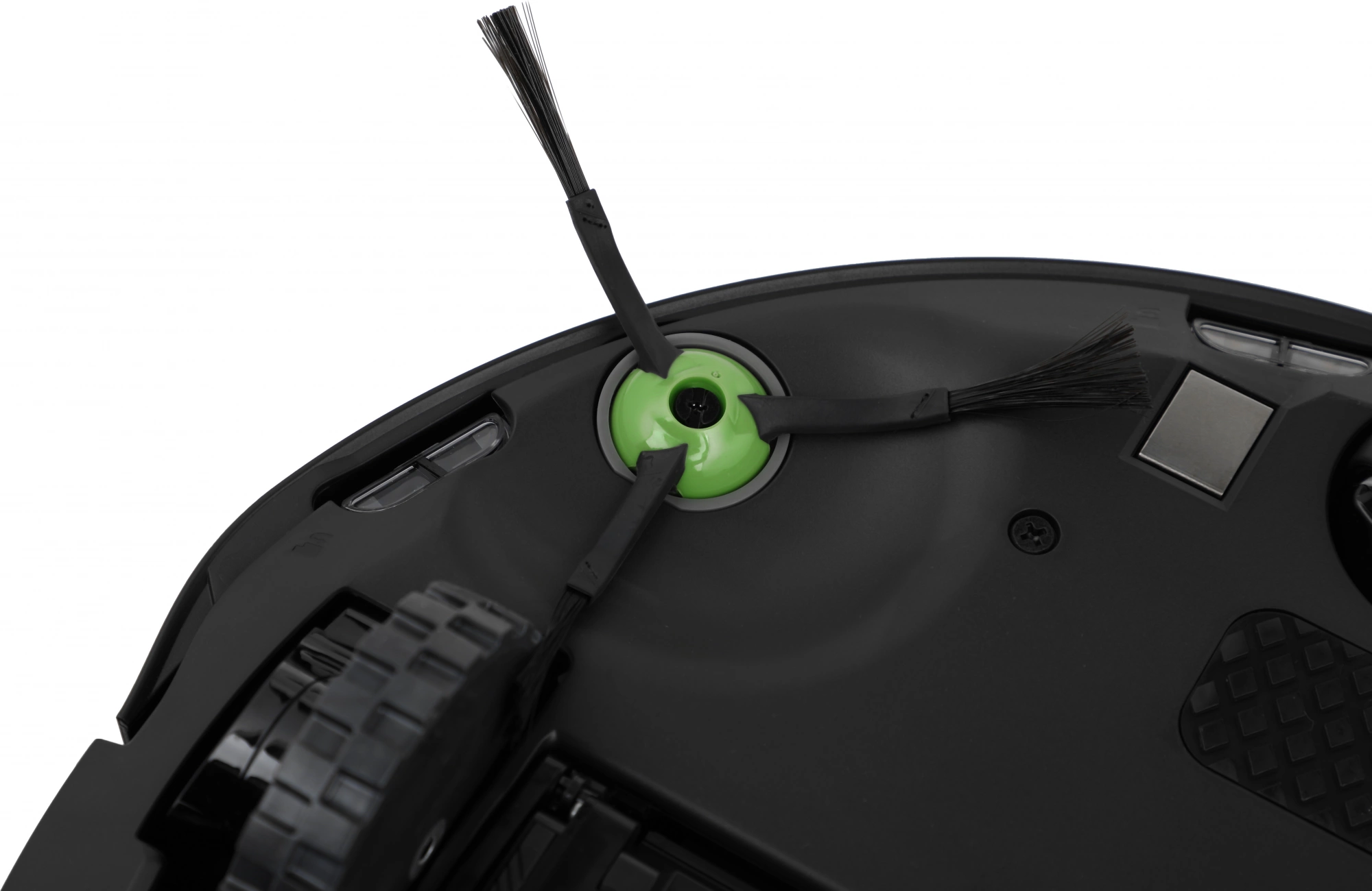 - Особенности робота-пылесосабоковые щетки, датчик обнаружения препятствий, датчик перепада высоты, индикация застревания, мягкий бампер