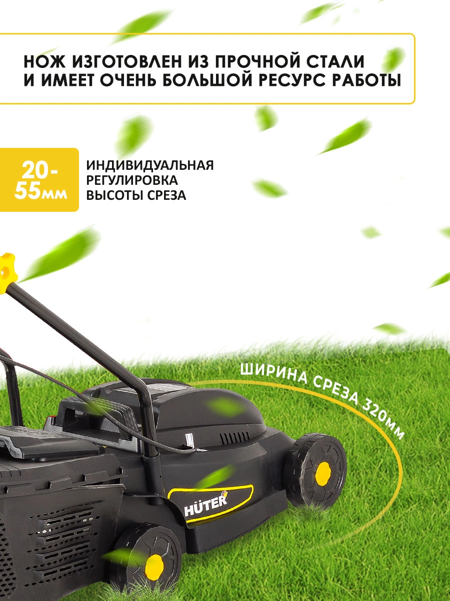 Газонокосилка роторная Huter ELM-320/1000 (900/70/4/19) 1000Вт