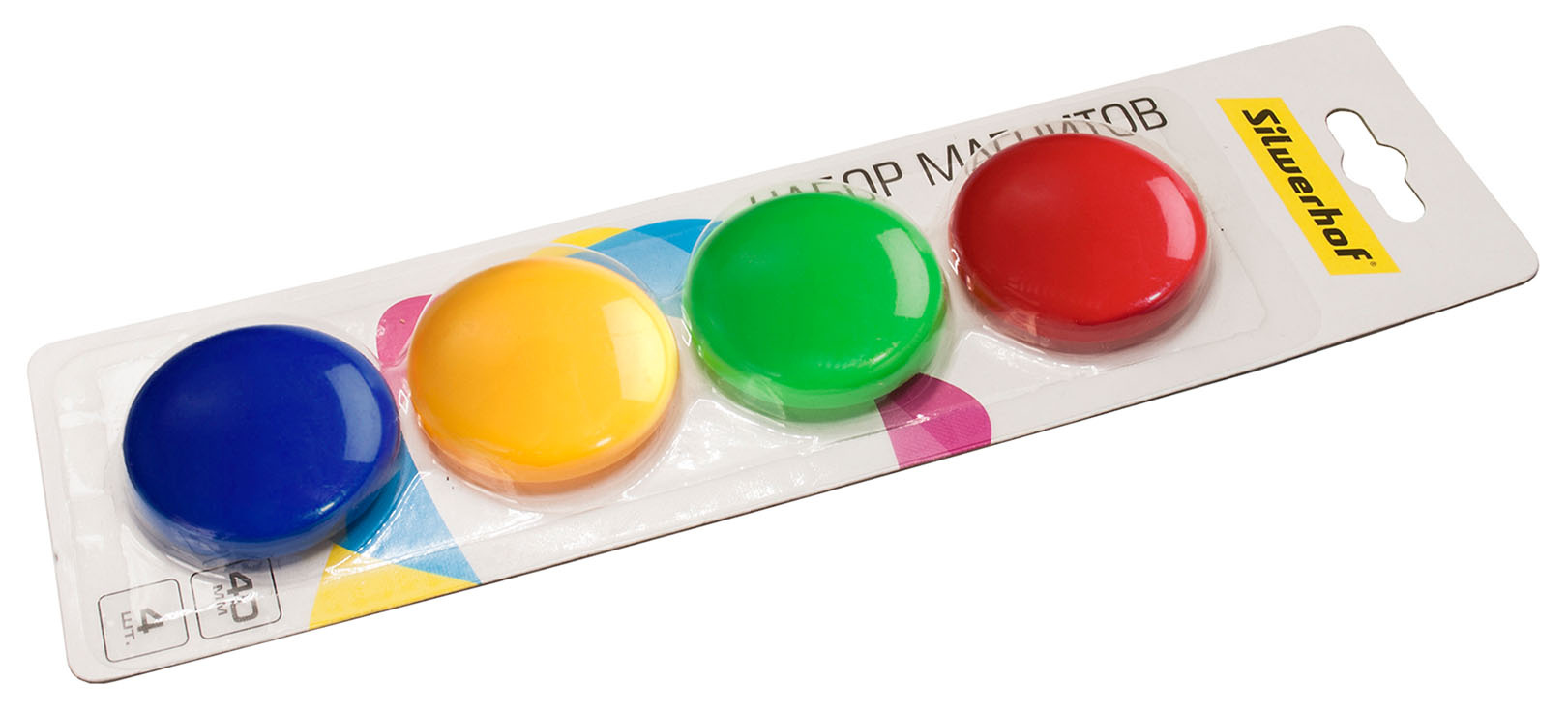 Магнит Silwerhof Classic для досок пластик ассорти d40мм круглый (упак.:4шт)
