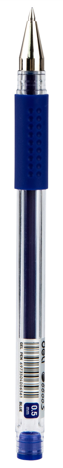 Ручка гелев. Deli Daily E6600SBlue прозрачный d=0.5мм син. черн. резин. манжета