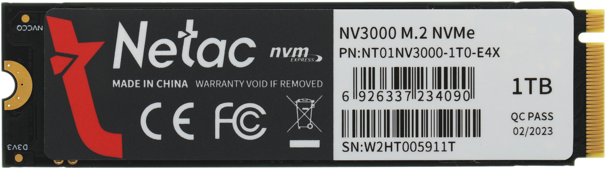 Накопитель SSD Netac PCI-E 3.0 x4 1Tb NT01NV3000-1T0-E4X NV3000 M.2 2280