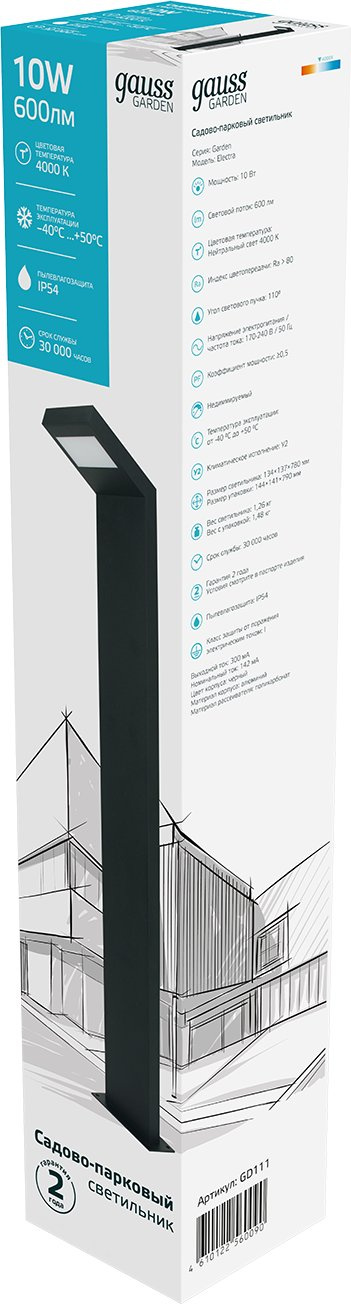 Светильник садово-парк. Gauss GD111 10Вт черный