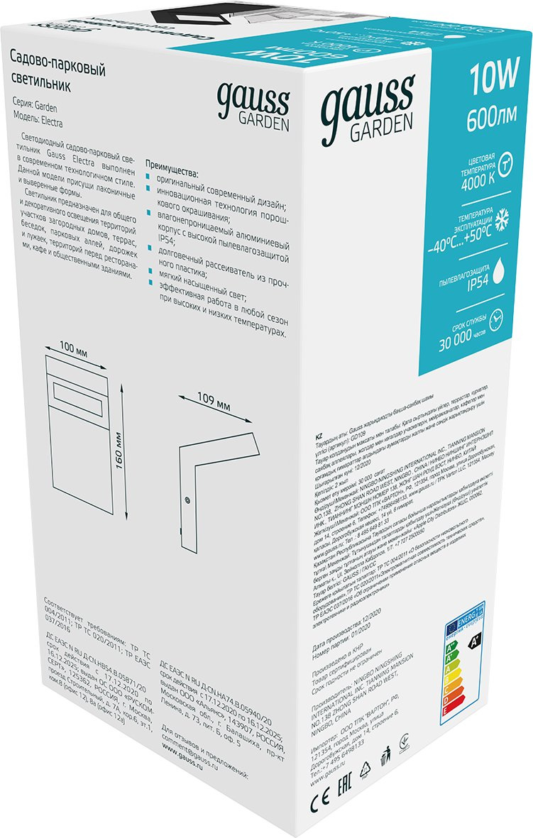 Светильник садово-парк. Gauss GD109 60Вт черный