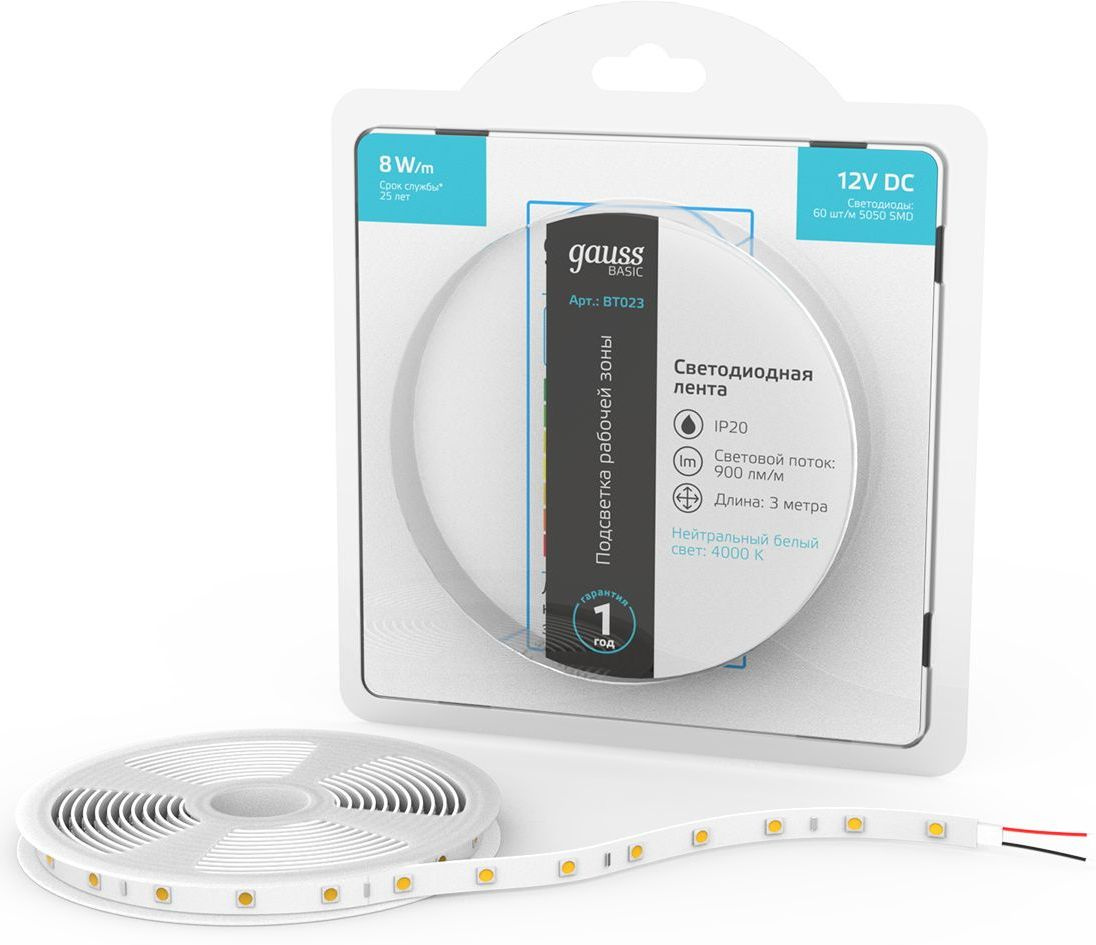 Лента светодиод. Gauss Basic 3м (BT023)