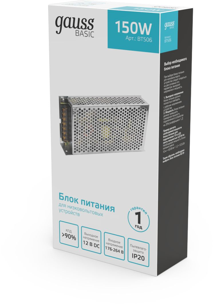 Блок питания Gauss Basic для лен.светод. серый (BT506)