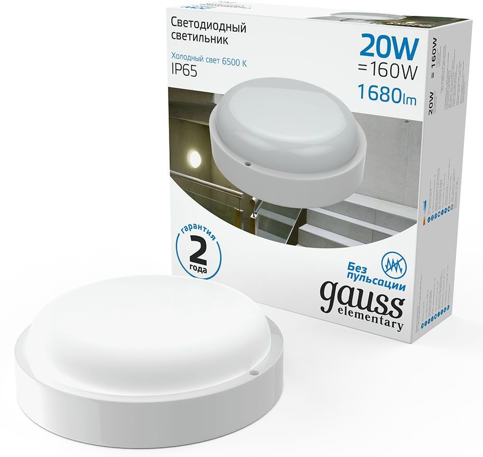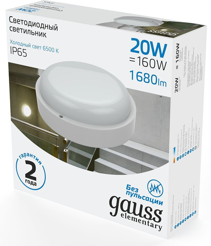 Светильник Gauss ЖКХ 126411320 20Вт 6500K белый опал