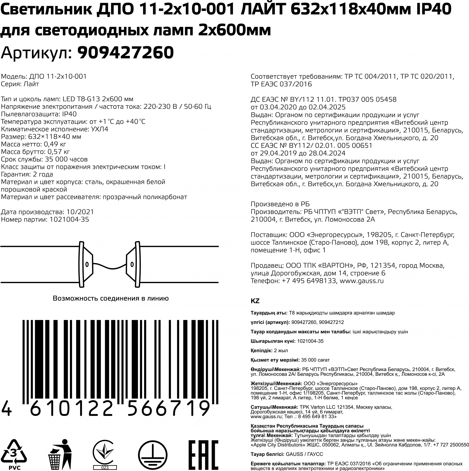 Светильник Gauss ДПО 909427260 24Вт белый прозрачный