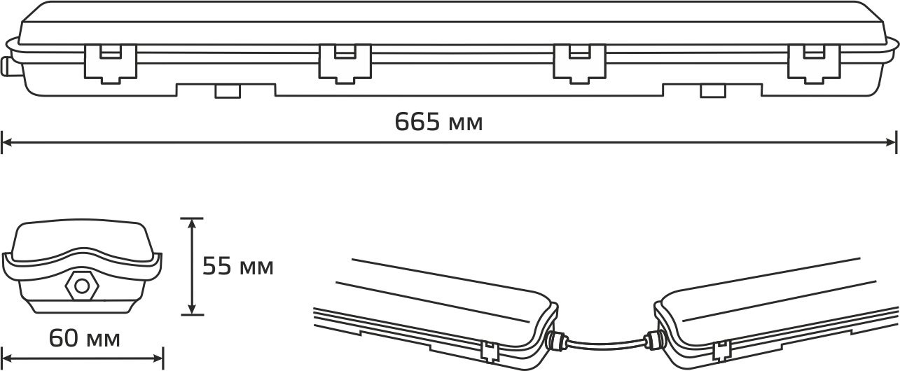 Светильник Gauss Lite СПП-Т8-G13 36Вт серый прямоугольный (909437160)