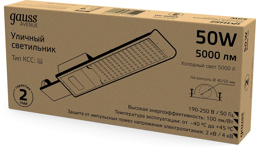 Светильник консольный Gauss 629534350 50Вт ламп.:50шт черный