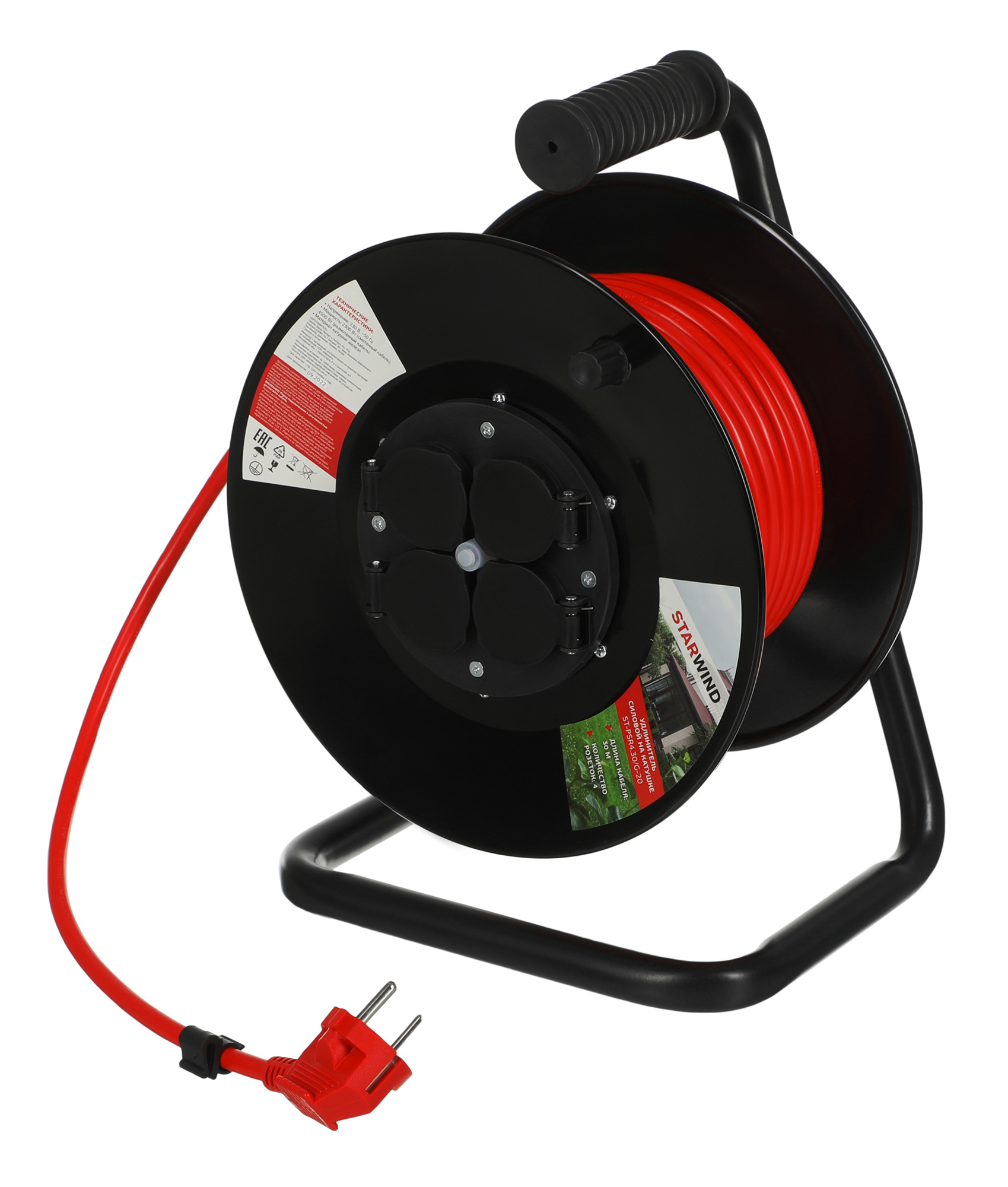 Удлинитель силовой Starwind ST-PSR4.30/G-20 3x2.0кв.мм 4розет. 30м ПВС 20A катушка оранжевый