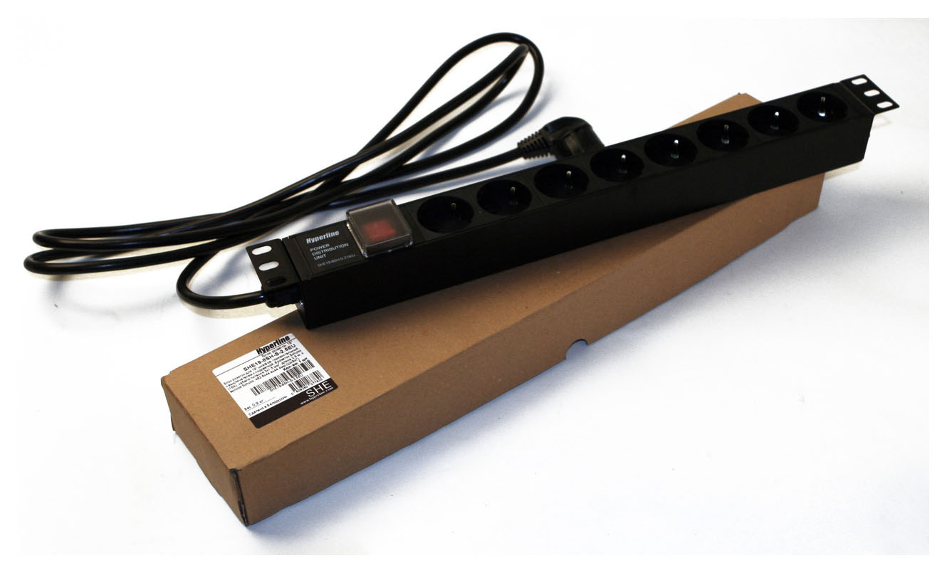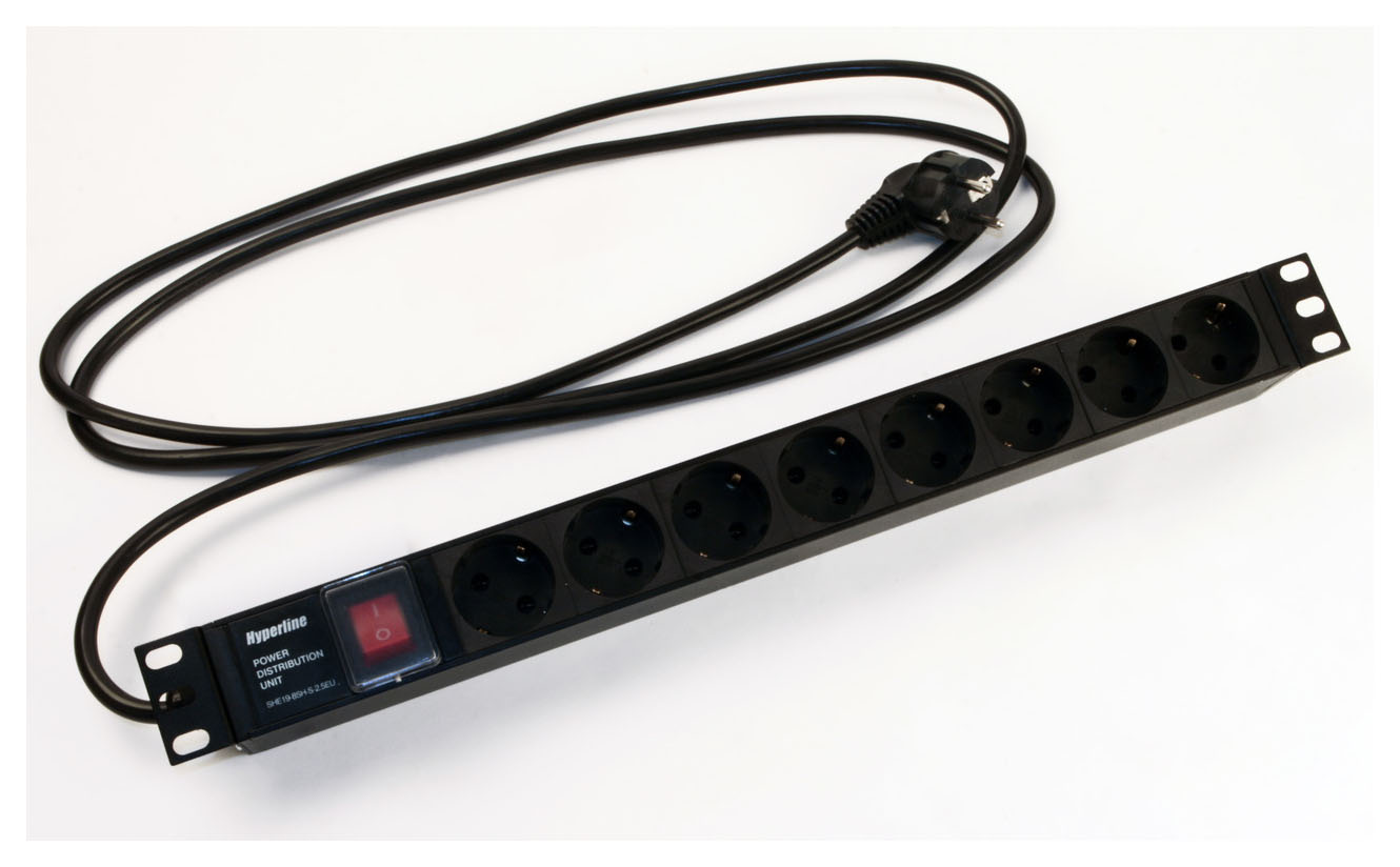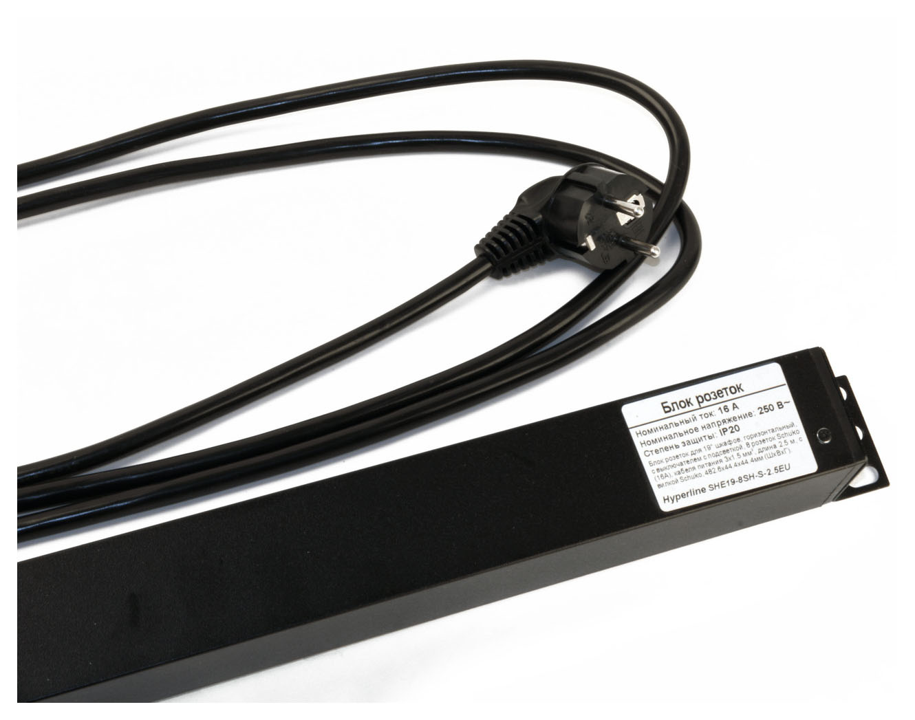 Блок распределения питания Hyperline SHE19-8SH-S-2.5EU гор.размещ. 8xSchuko базовые 16A Schuko 2.5м