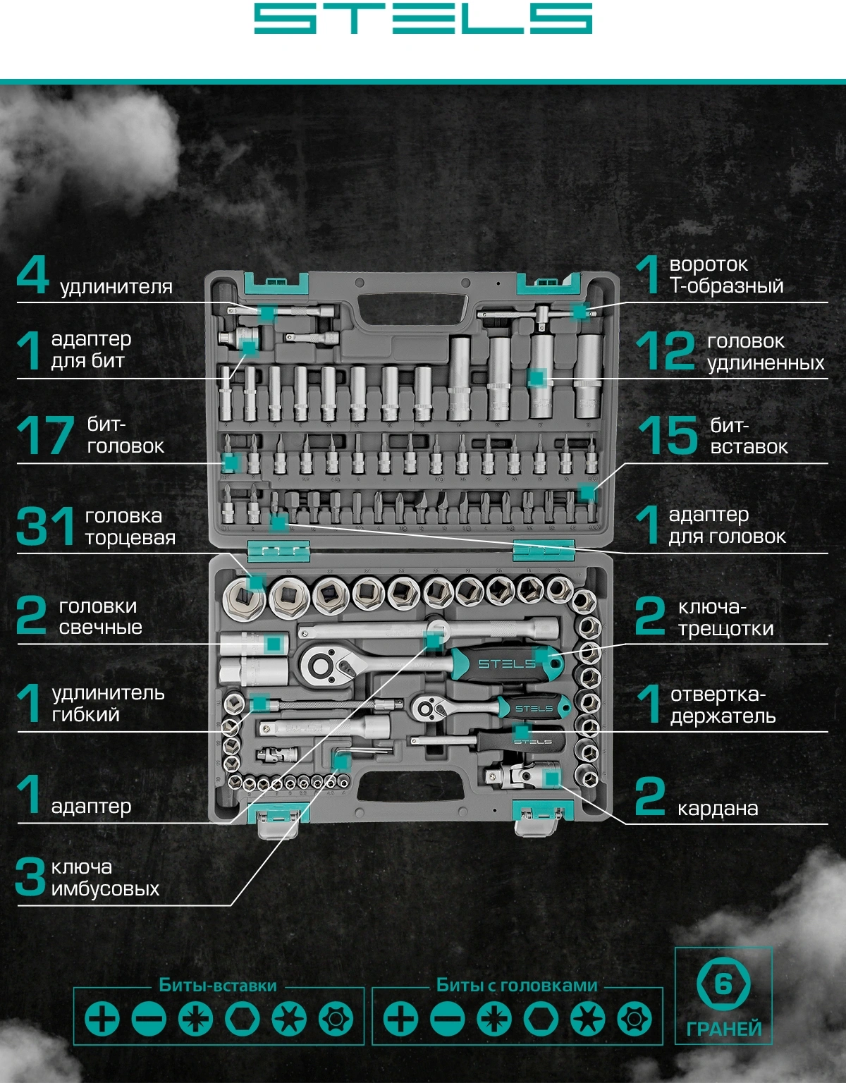 Набор инструментов Stels 14106 94 предмета (жесткий кейс)