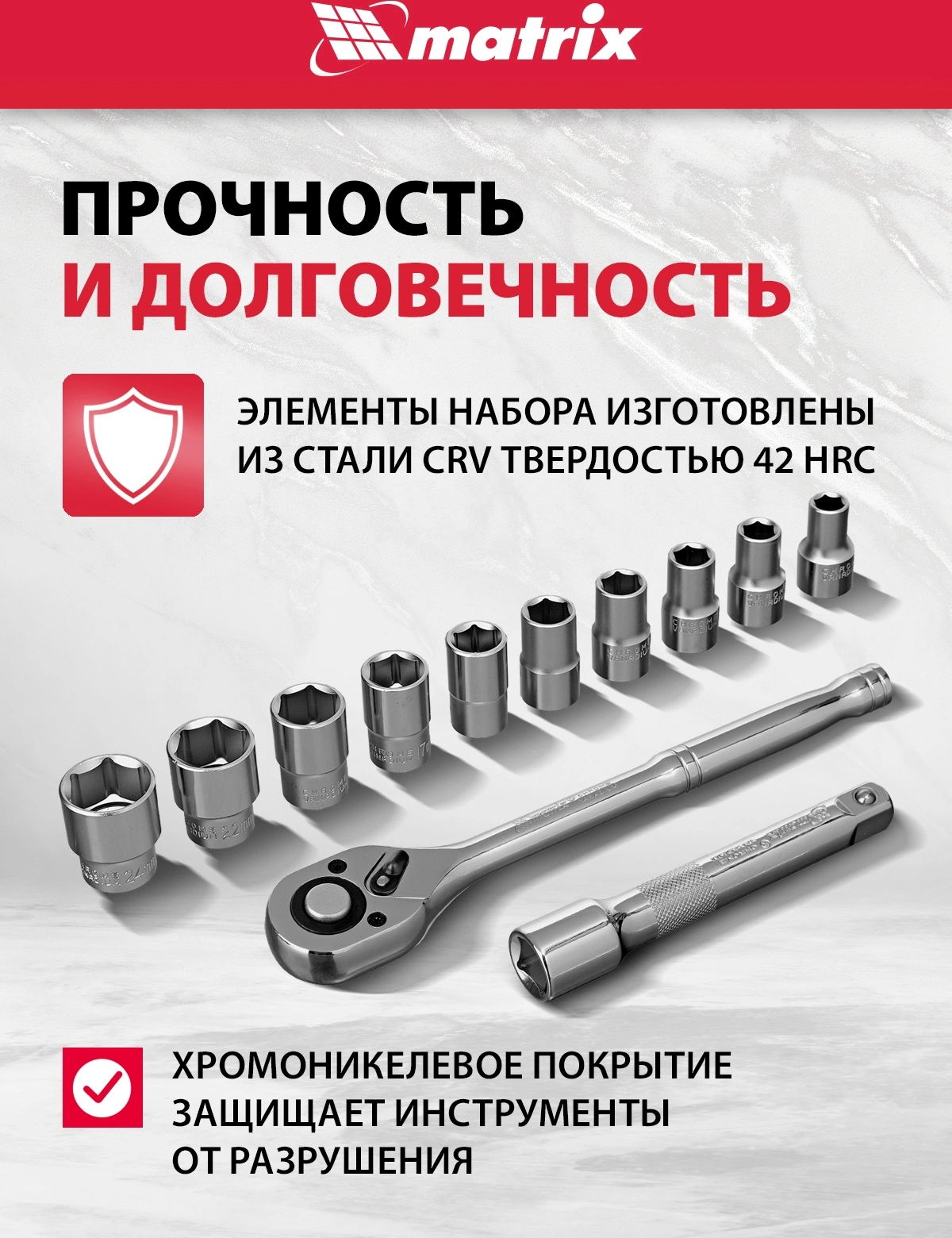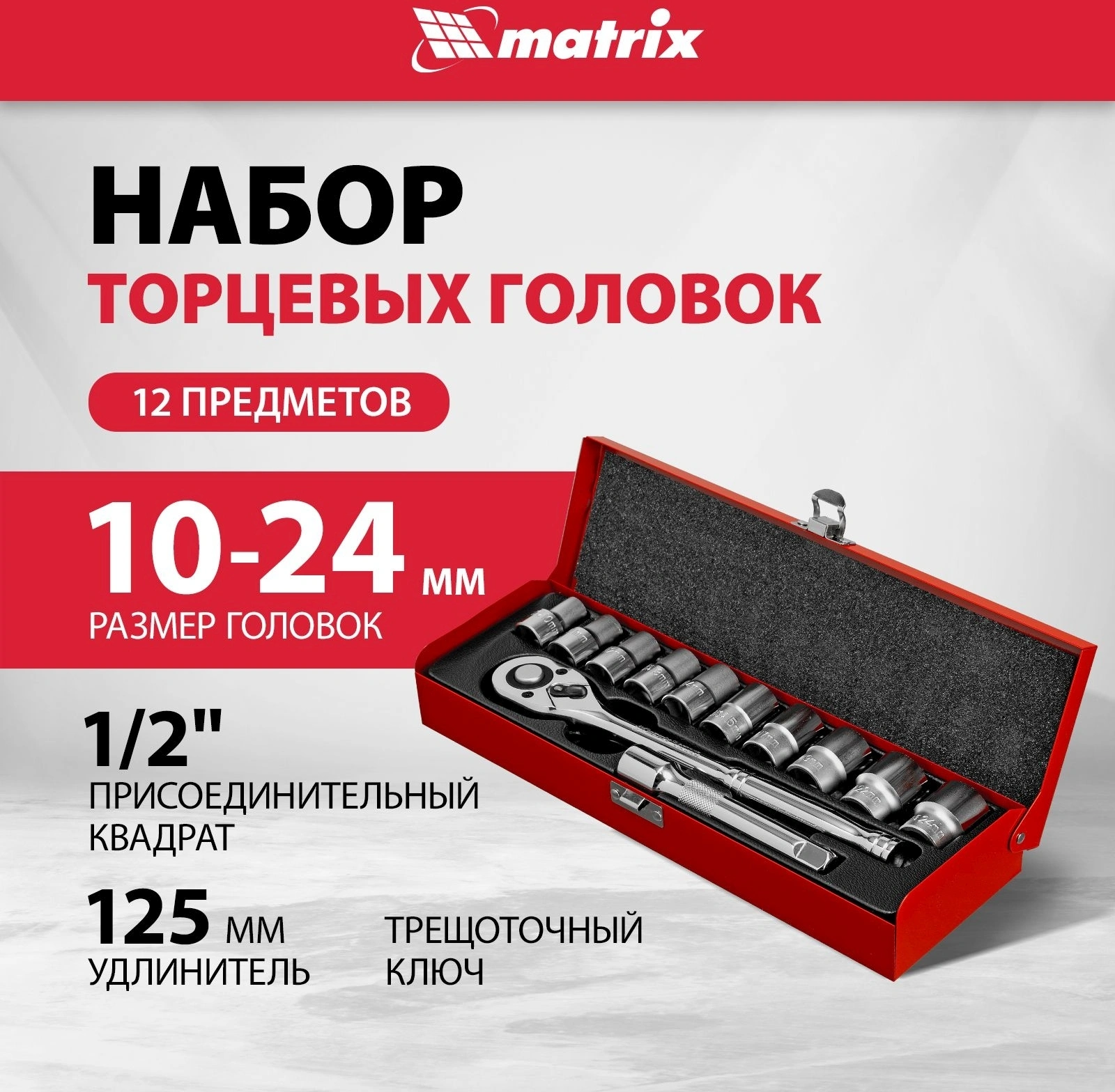 Набор торцевых головок Matrix 13526 в комплекте 12 предметов +жесткий кейс