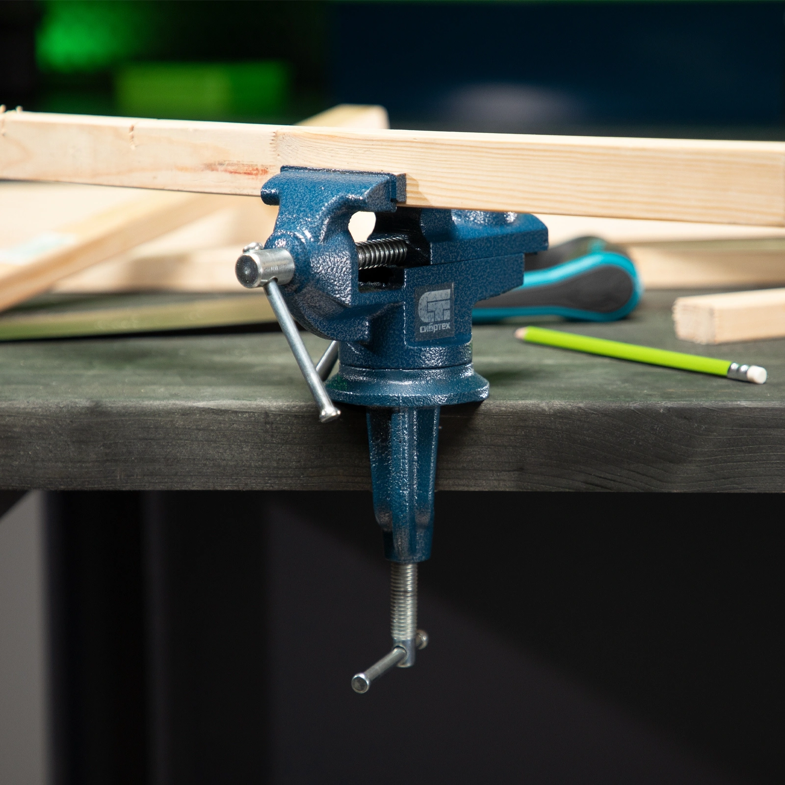 Тиски слесарные, настольные, поворотные, ширина рабочих губок 65мм, наковальня// Сибртех