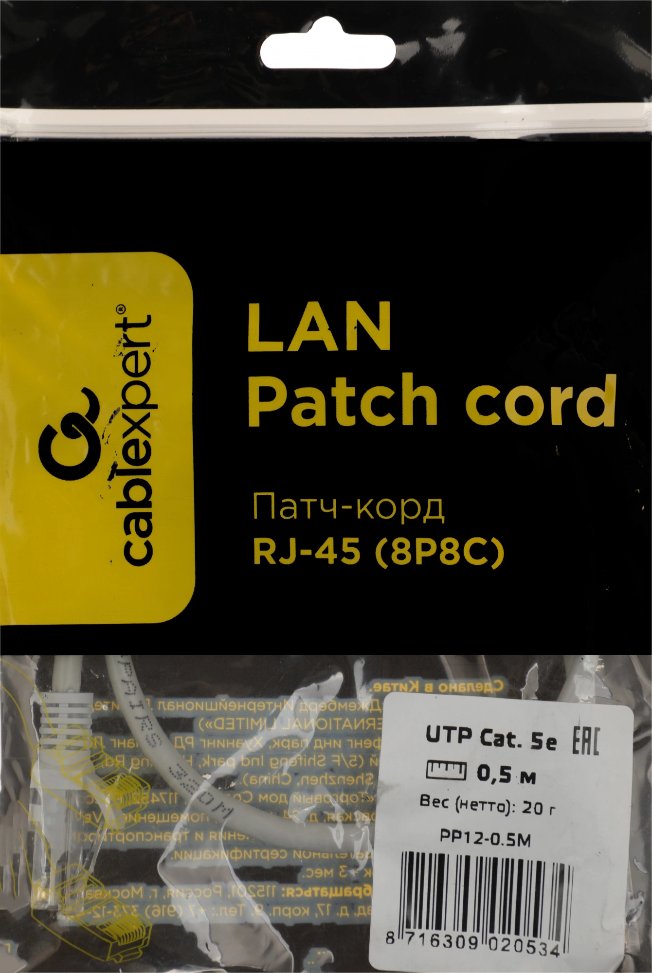 Патч-корд Premier PP12-0.5M 1000Гбит/с UTP 4 пары cat.5E CCA molded 0.5м серый RJ-45 (m)-RJ-45 (m)