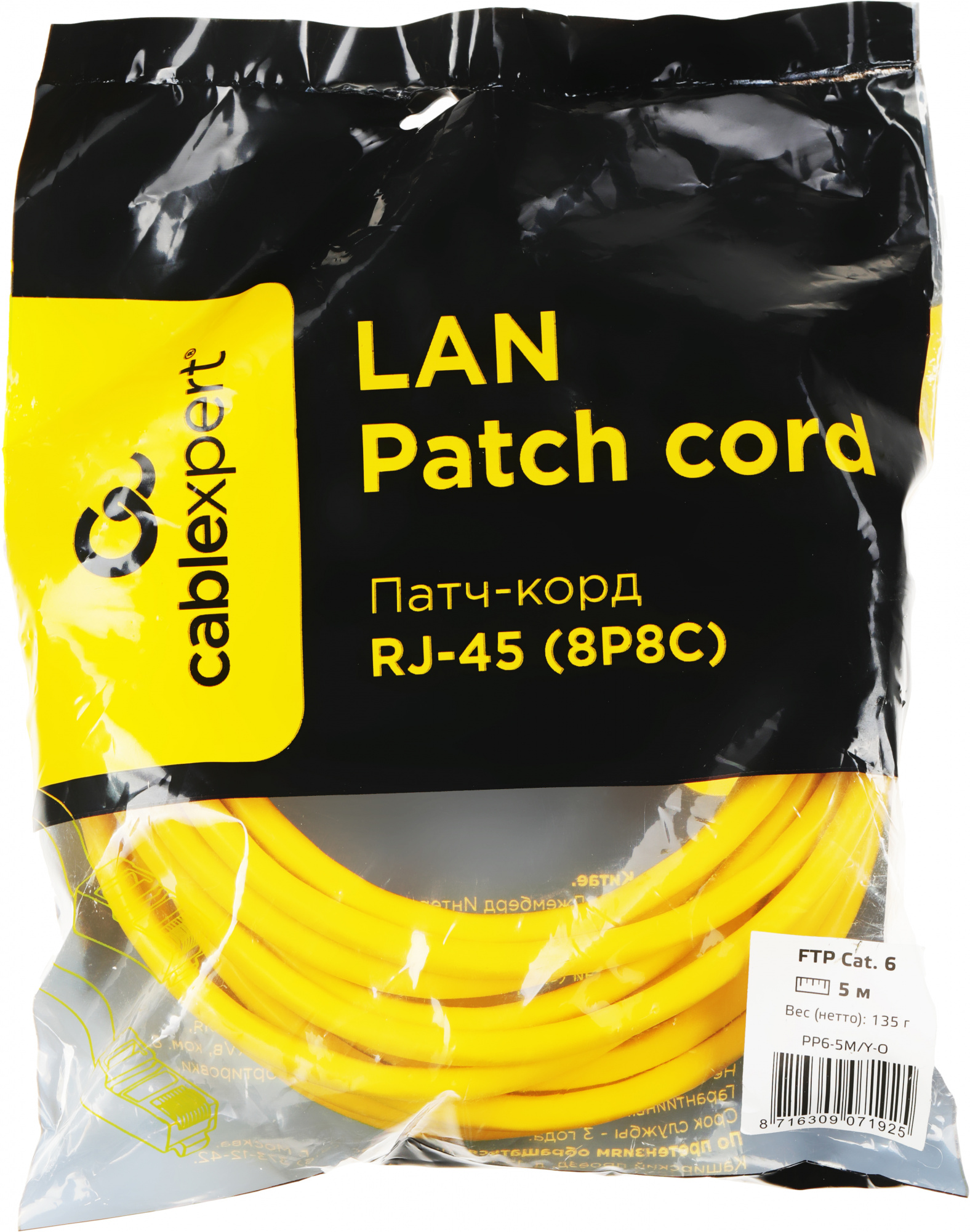 Патч-корд Premier PP6-5M/Y-O 10000Гбит/с FTP 4 пары cat.6 CCA molded 5м желтый RJ-45 (m)-RJ-45 (m)