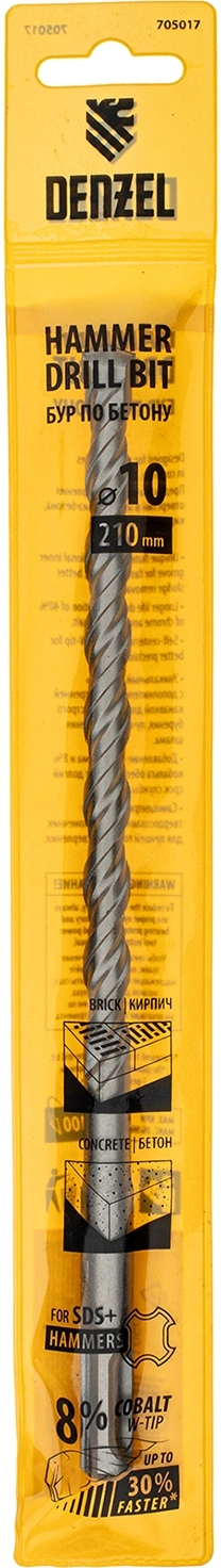 Бур Denzel 705017 по бетону Д=10мм Дл=210мм (1пред.) для перфораторов