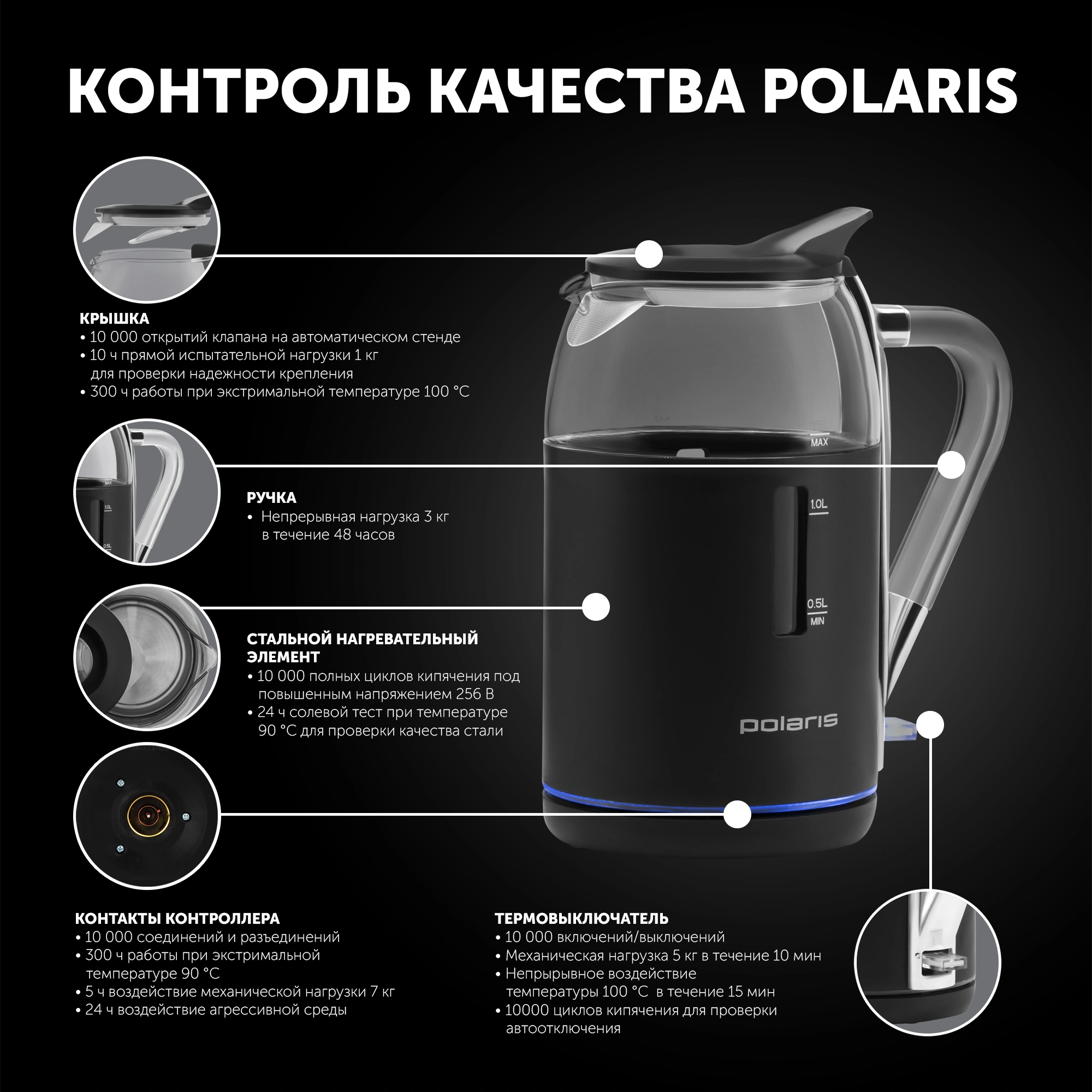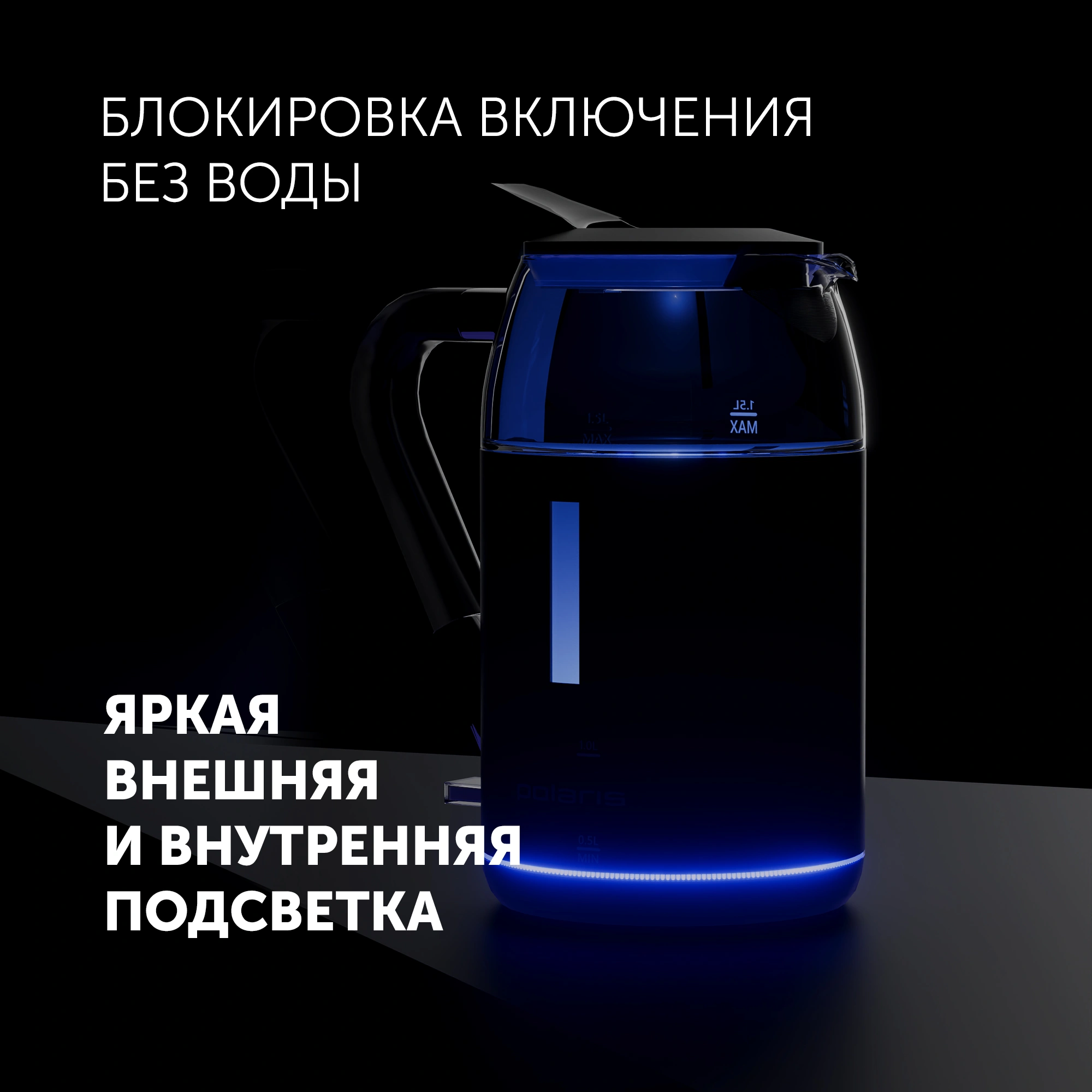 Чайник электрический Polaris PWK 1563CGL 1.5л. 2200Вт черный/прозрачный корпус: стекло/пластик