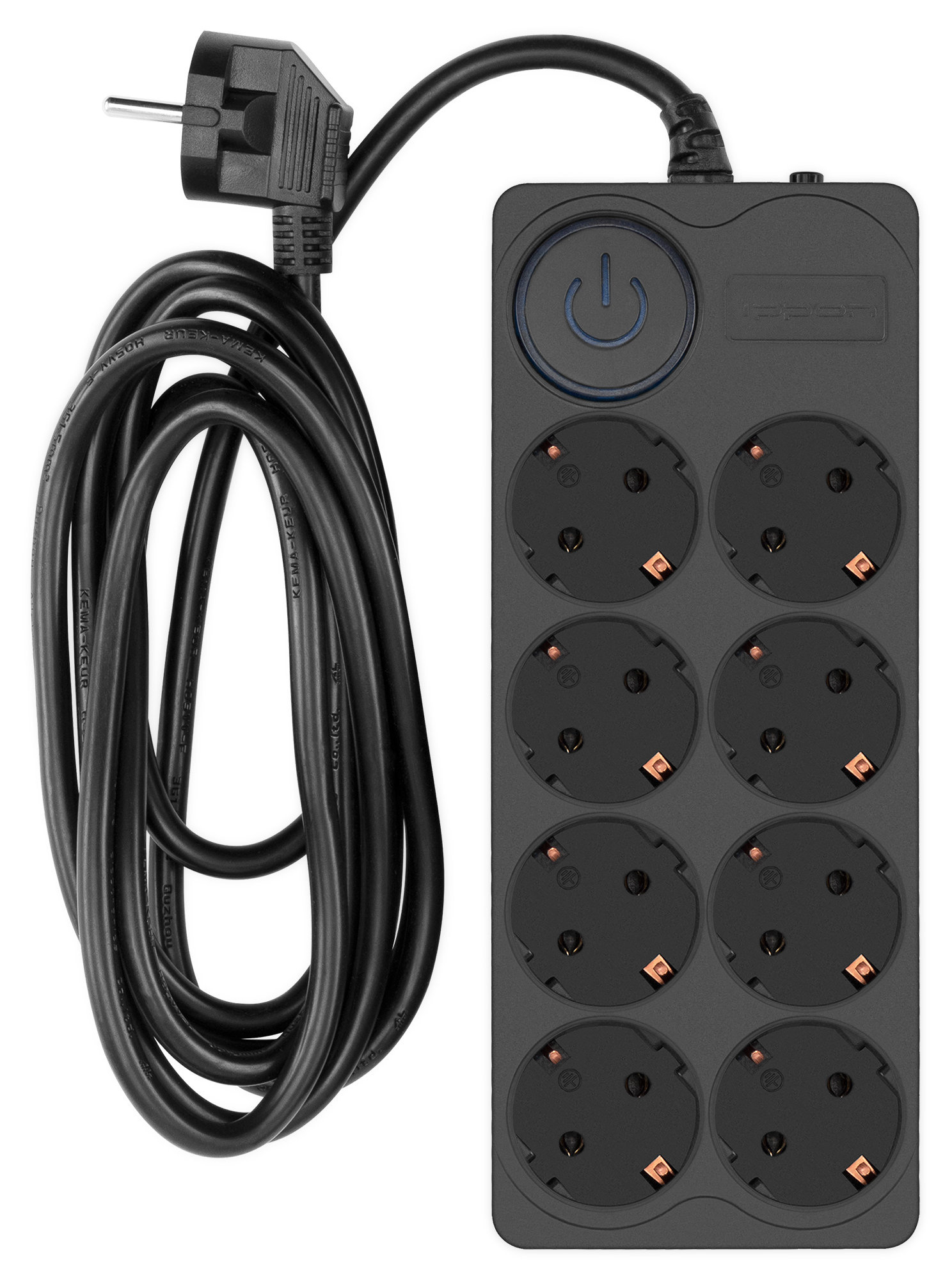 - Особенности8 евророзеток с заземлением. Входная вилка Schuko. Защита от перегрузки. Защита от импульсов высокого напряжения. Защита от перетирания провода в месте входа в корпус фильтра. Ударопрочный негорючий корпус. Кнопка питания с индикатором сети.