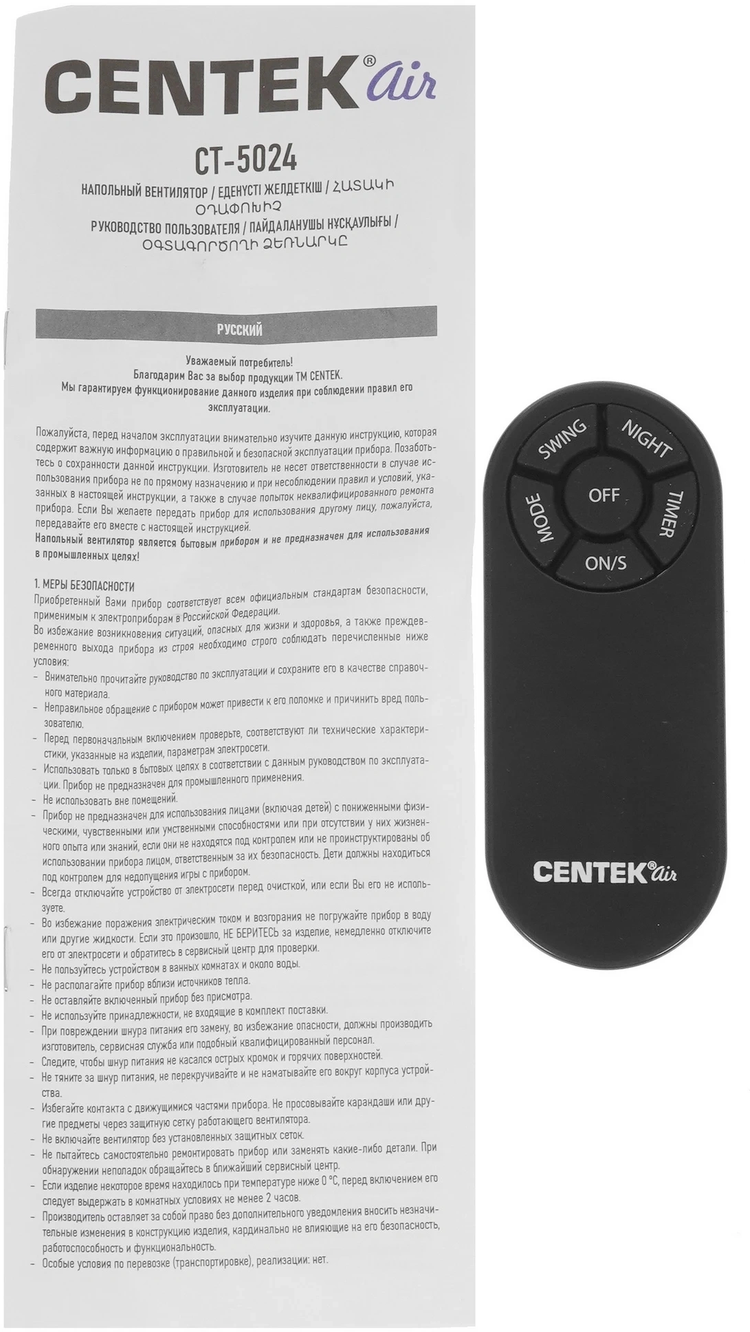 Вентилятор напольный Centek CT-5024 65Вт скоростей:4 ПДУ черный