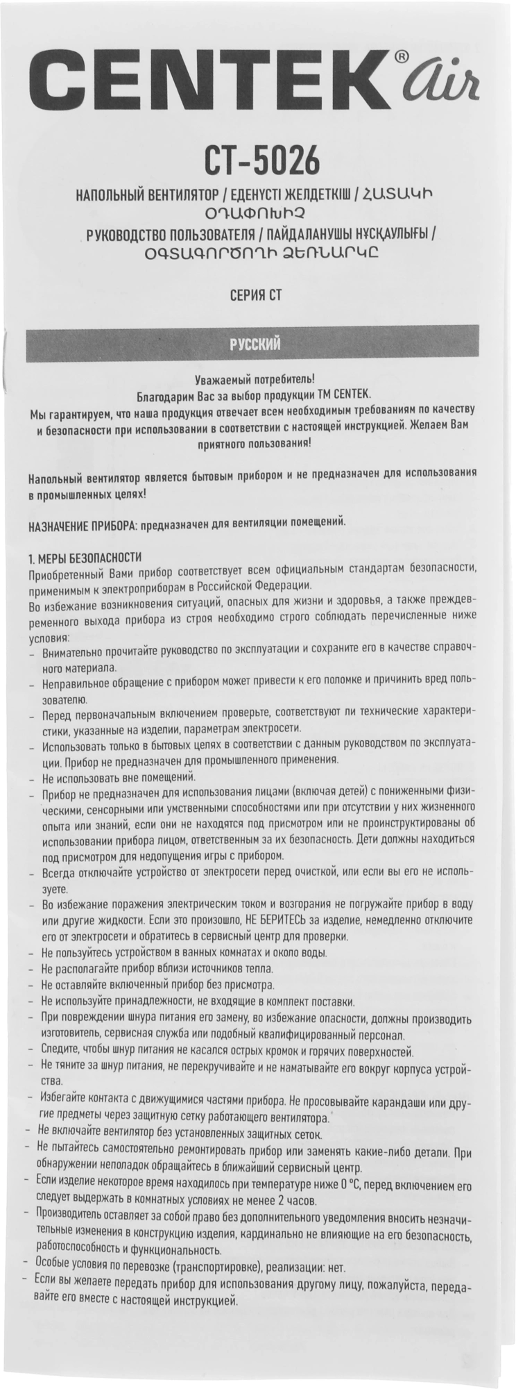 Вентилятор напольный Centek CT-5026 65Вт скоростей:4 ПДУ черный