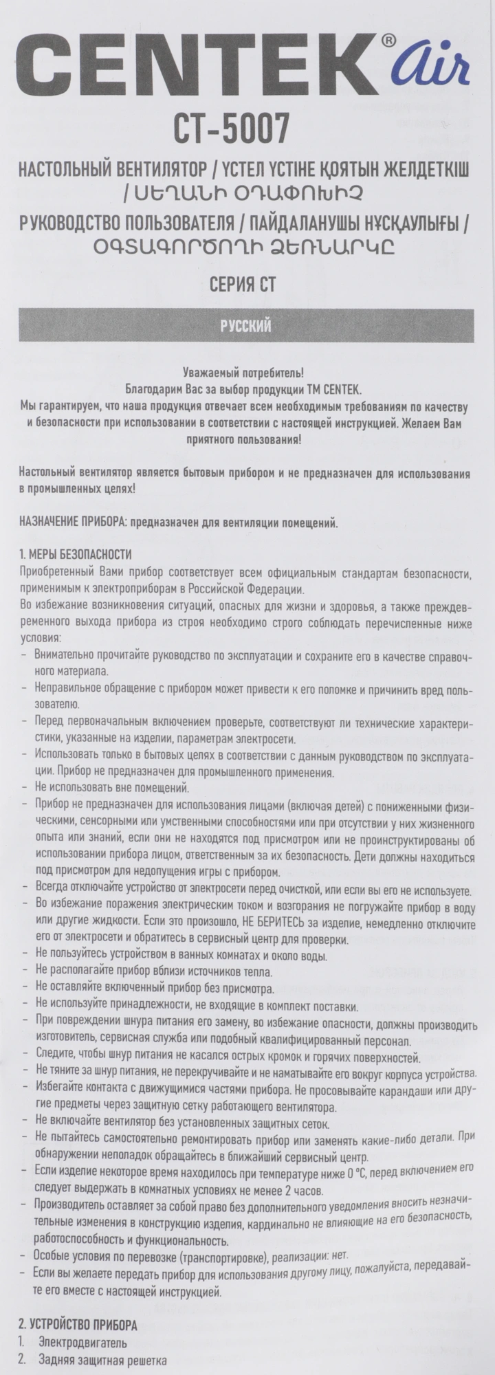 Вентилятор настольный Centek CT-5007 30Вт скоростей:3 белый