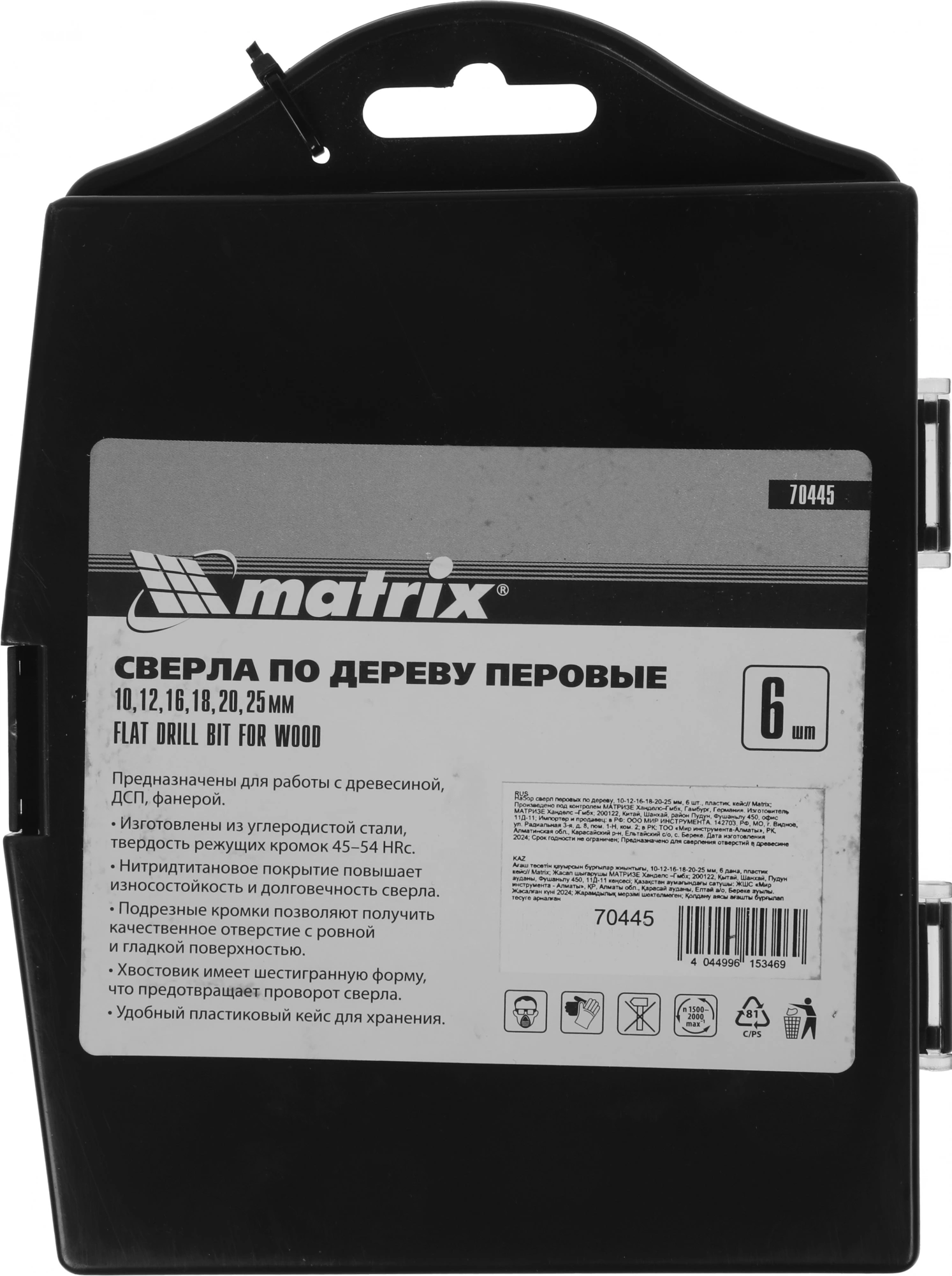 - Состав набораНабор сверл перовых по дереву (6 шт; 10-12-16-18-20-25 мм.) MATRIX 70445