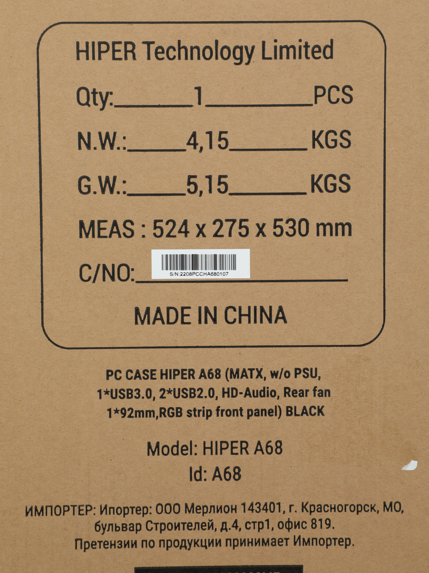 Корпус Hiper A68 черный без БП mATX 1x80mm 1x92mm 2xUSB2.0 1xUSB3.0 audio
