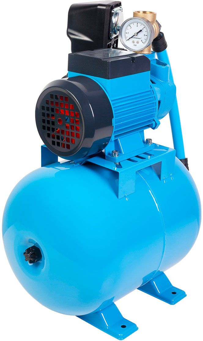 - ОсобенностиКорпус насоса-автомата изготовлен из чугуна, рабочее колесо — из латуни. Корпус гидроаккумулятора изготовлен из углеродистой стали.