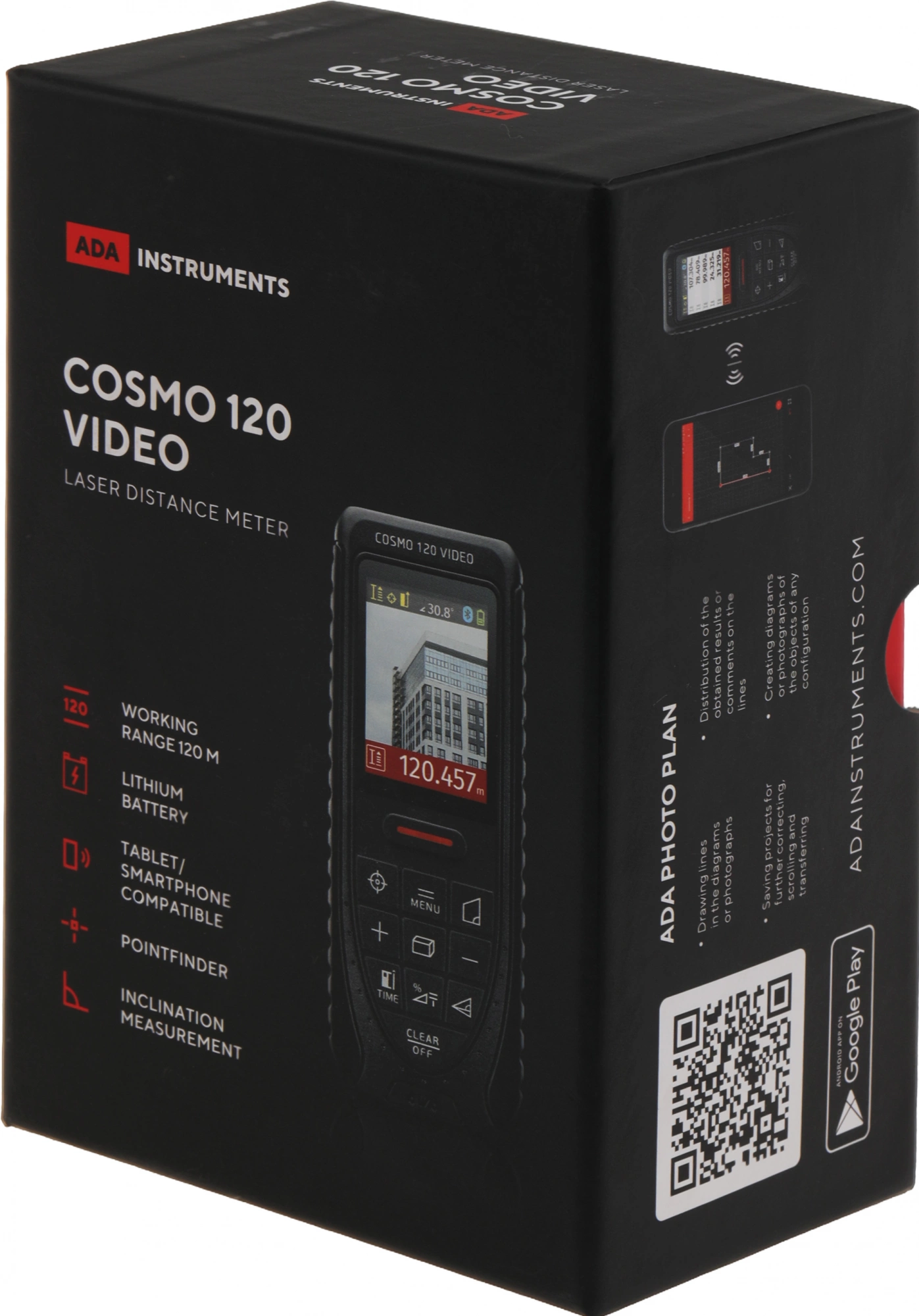 Лазерный дальномер ADA Cosmo 120 Video обладает дальностью работы от 0,05 до 120 м. Цифровой визир и датчик наклона позволяют проводить даже сложные измерения. Функция маляра. Вычисление одинаковых отрезков.(электронный формат сертификата https://fgis.gost.ru/fundmetrology/cm/results)