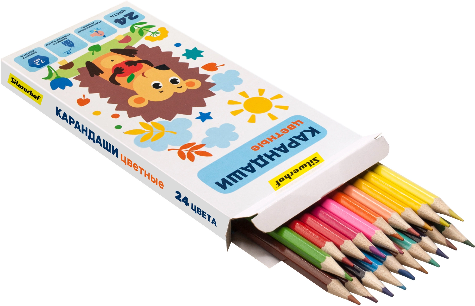 Карандаши цв. Silwerhof Веселые друзья 2.65мм шестигран. дерево ассорти 24цв. коробка/европод.