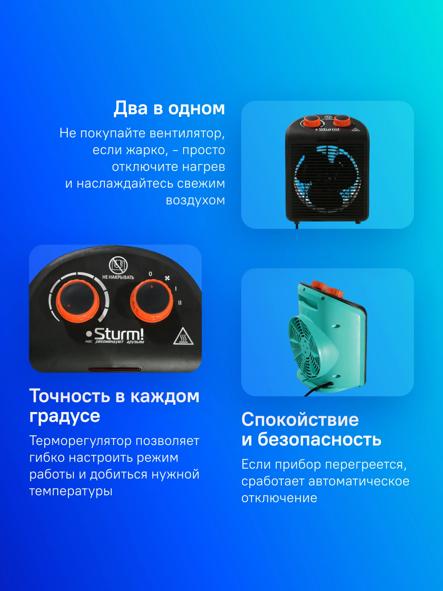 Тепловентилятор Sturm! FH2001 2000Вт черный/зеленый