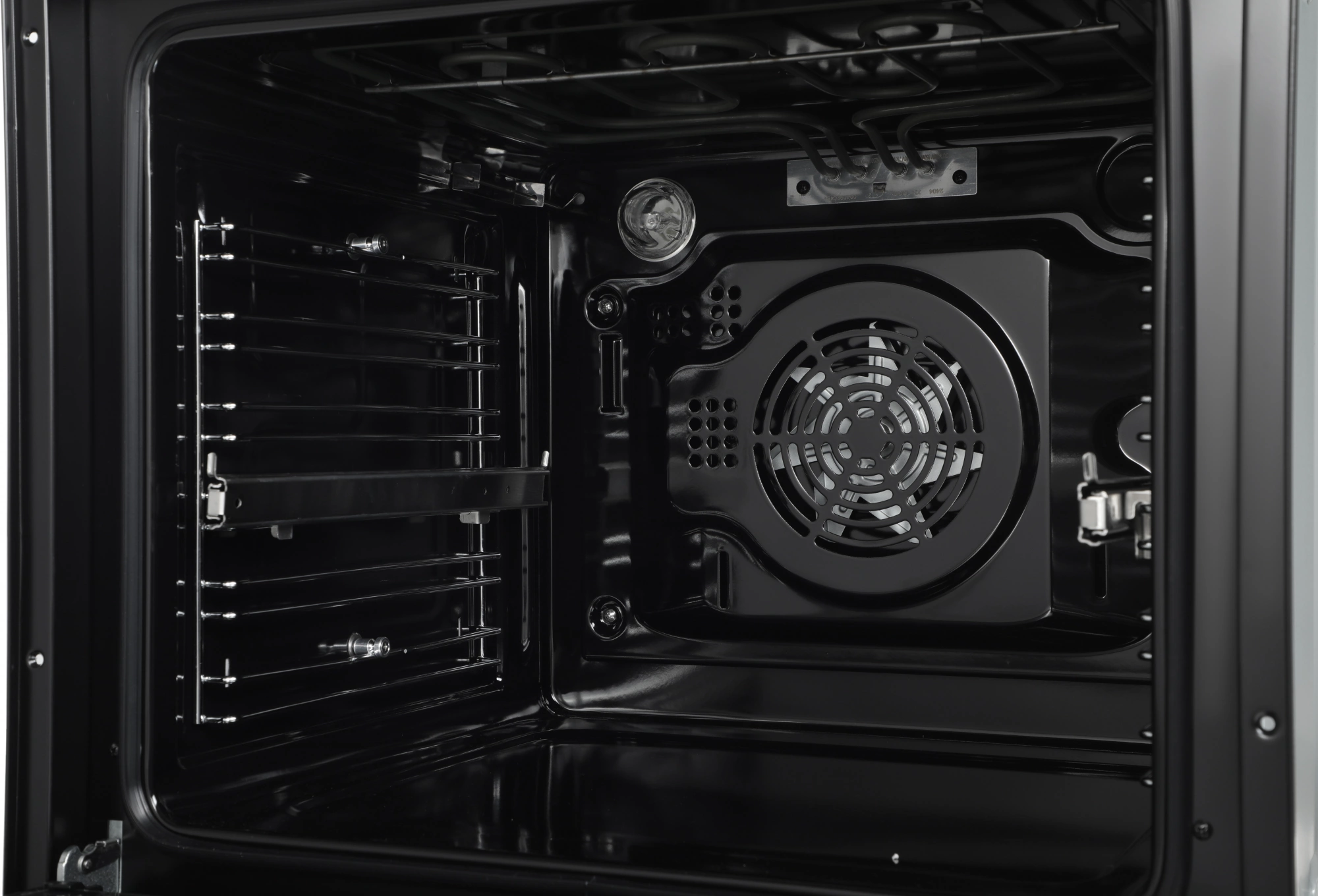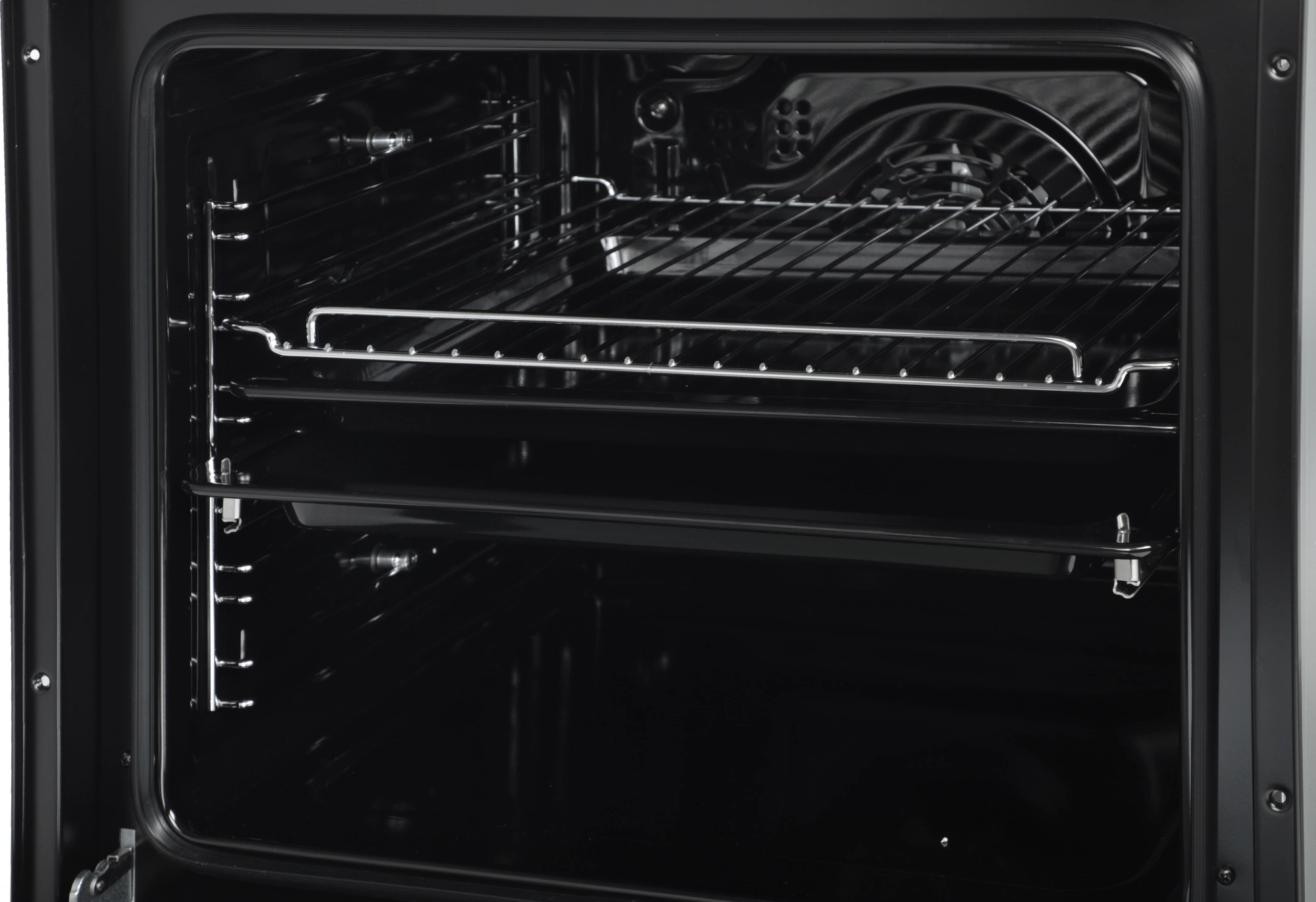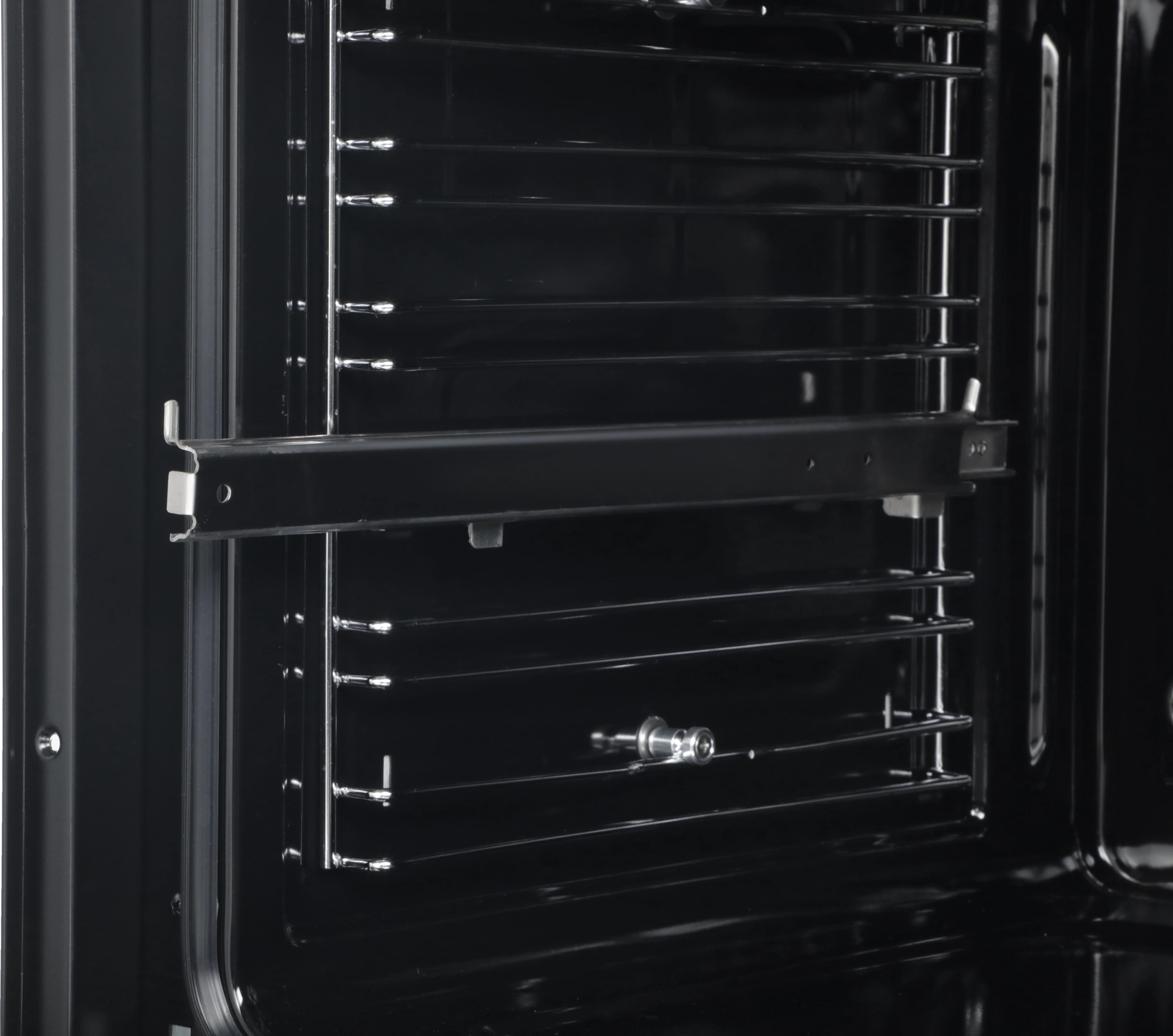 - Особенности конструкциидисплей, полностью стеклянная внутренняя поверхность дверцы духовки, телескопические направляющие