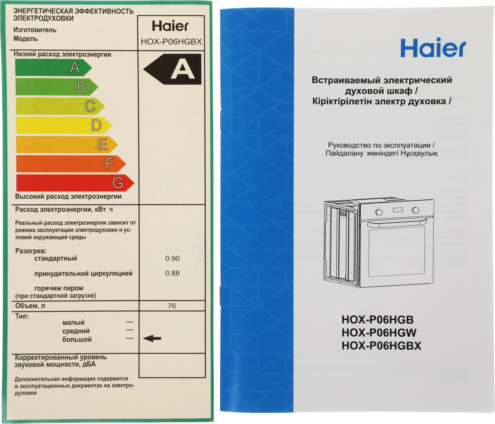Духовой шкаф Электрический Haier HOX-P06HGBX черное стекло/нержавеющая сталь
