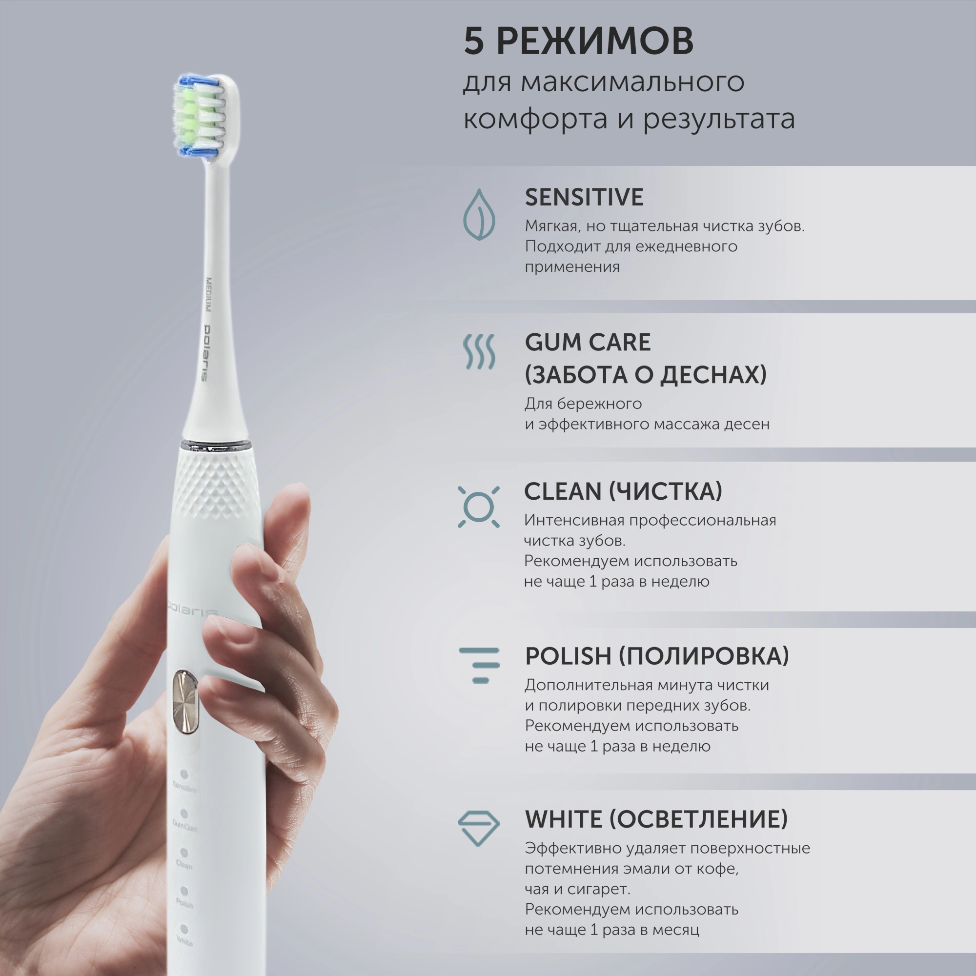 Зубная щетка электрическая Polaris PETB 0701 TC белый