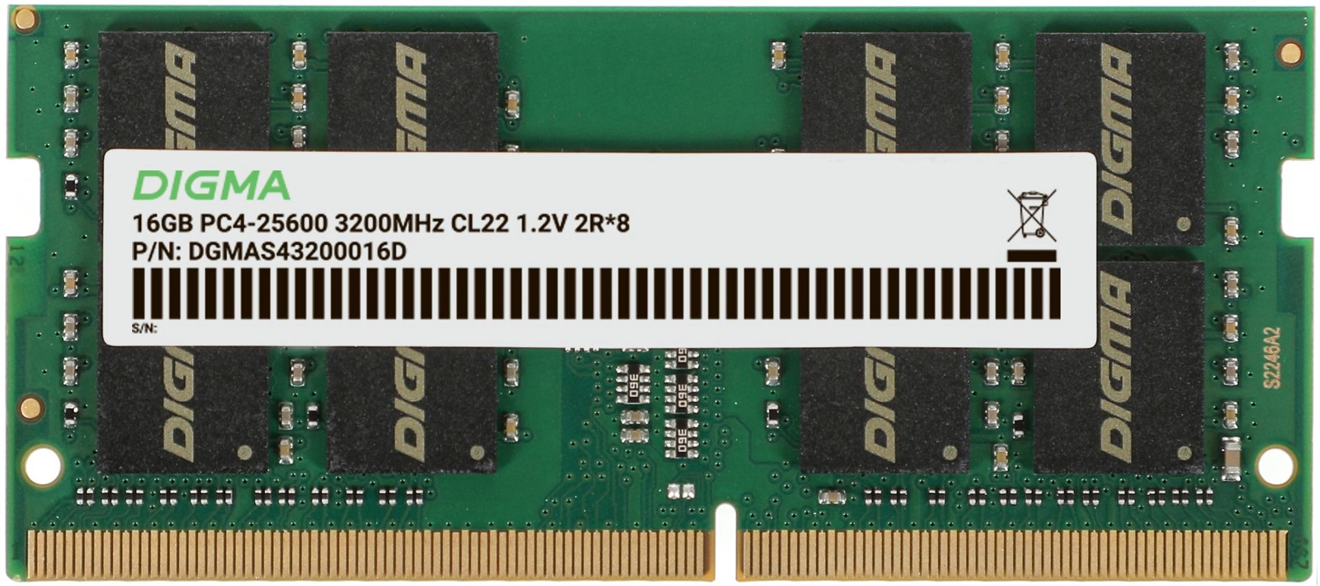 Память DDR4 16GB 3200MHz Digma DGMAS43200016D RTL PC4-25600 CL22 SO-DIMM 260-pin 1.2В dual rank Ret