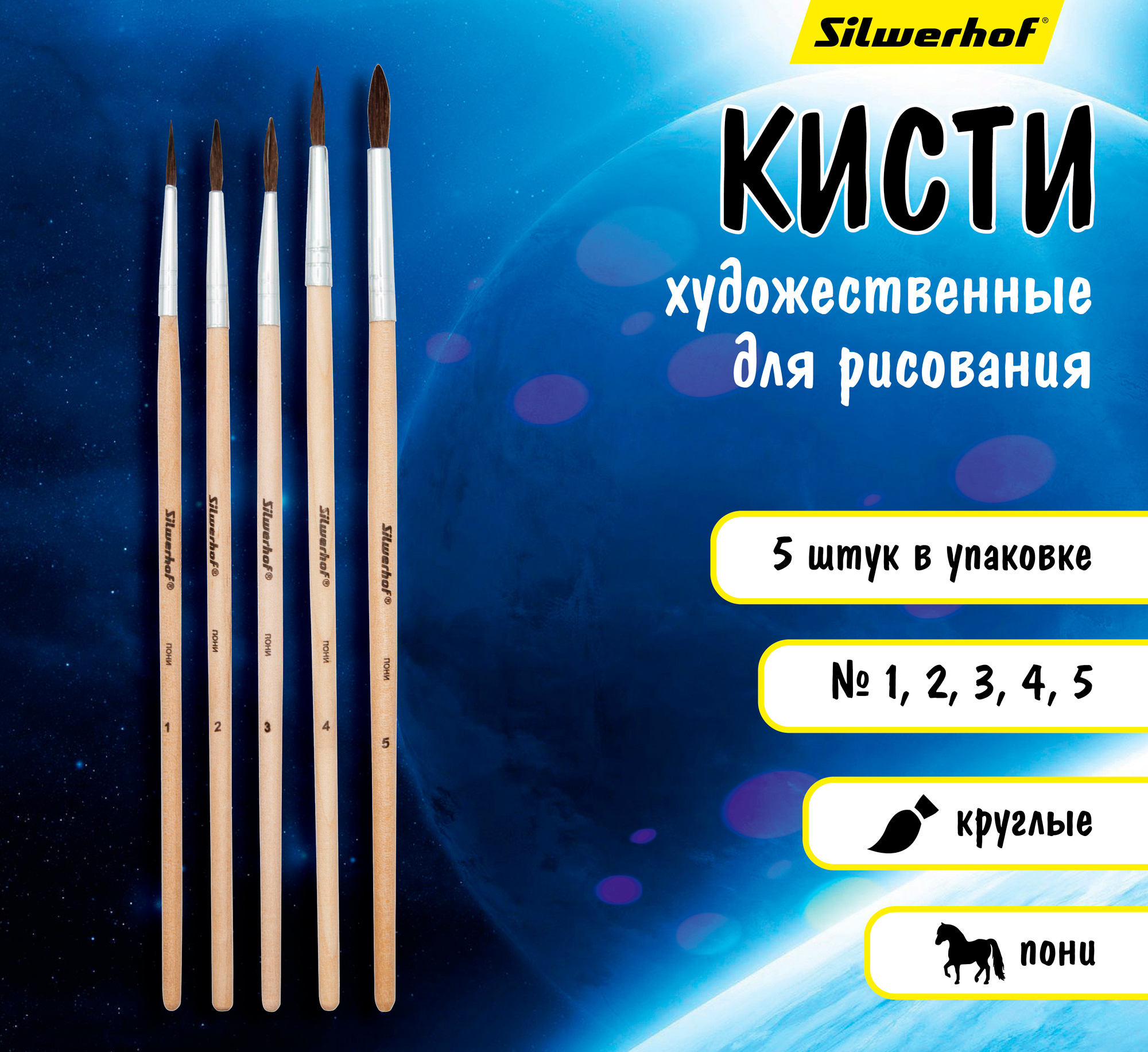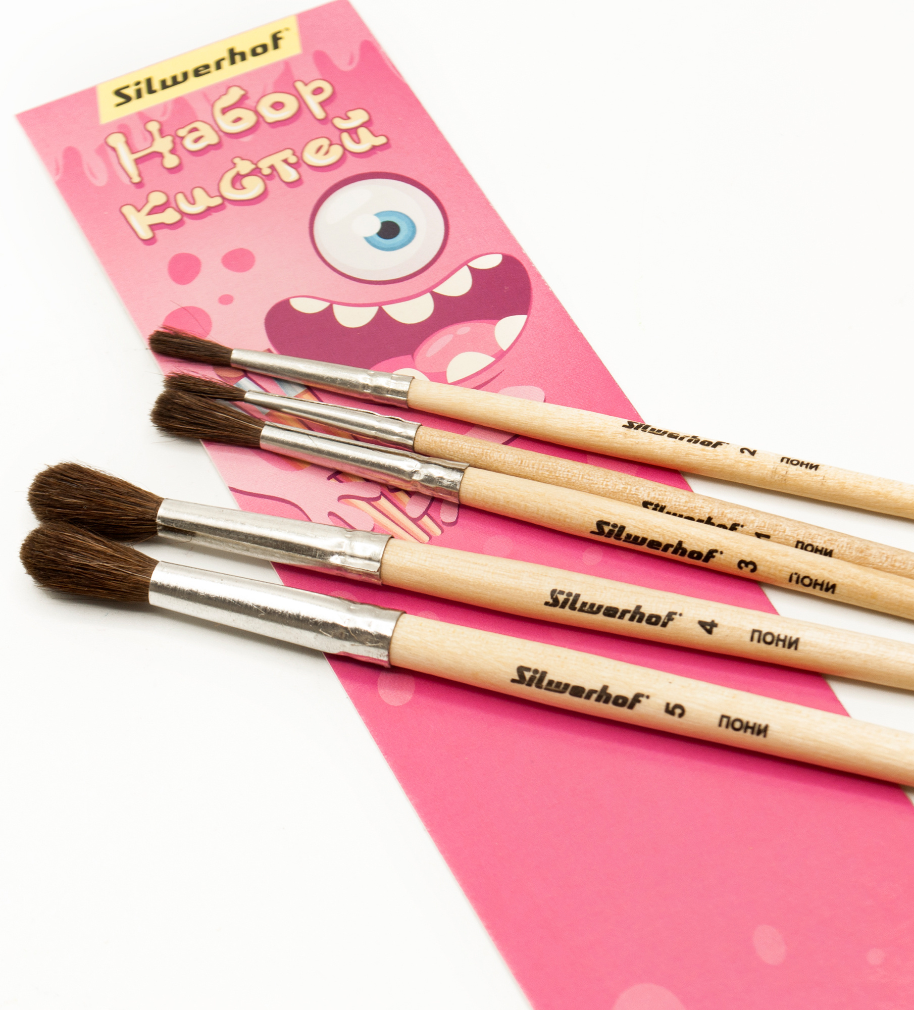 Набор кистей Silwerhof Монстрики (наб.5шт) пон.круг.№1-5 дерев.лакир.ручка