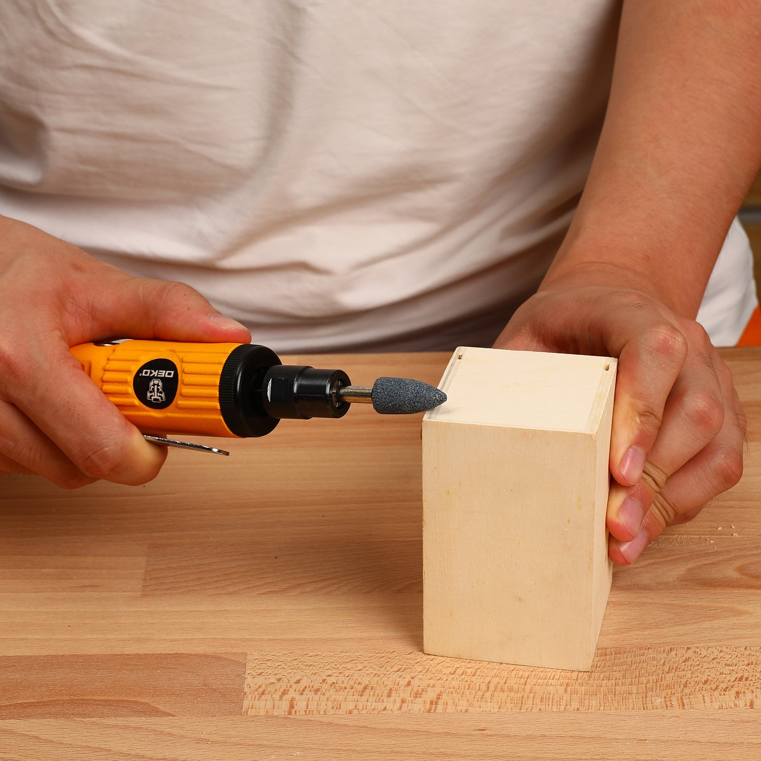Шлифмашина орбитальная Deko DKPT02 SET 3 113л/мин шпинд.:3мм желтый/черный