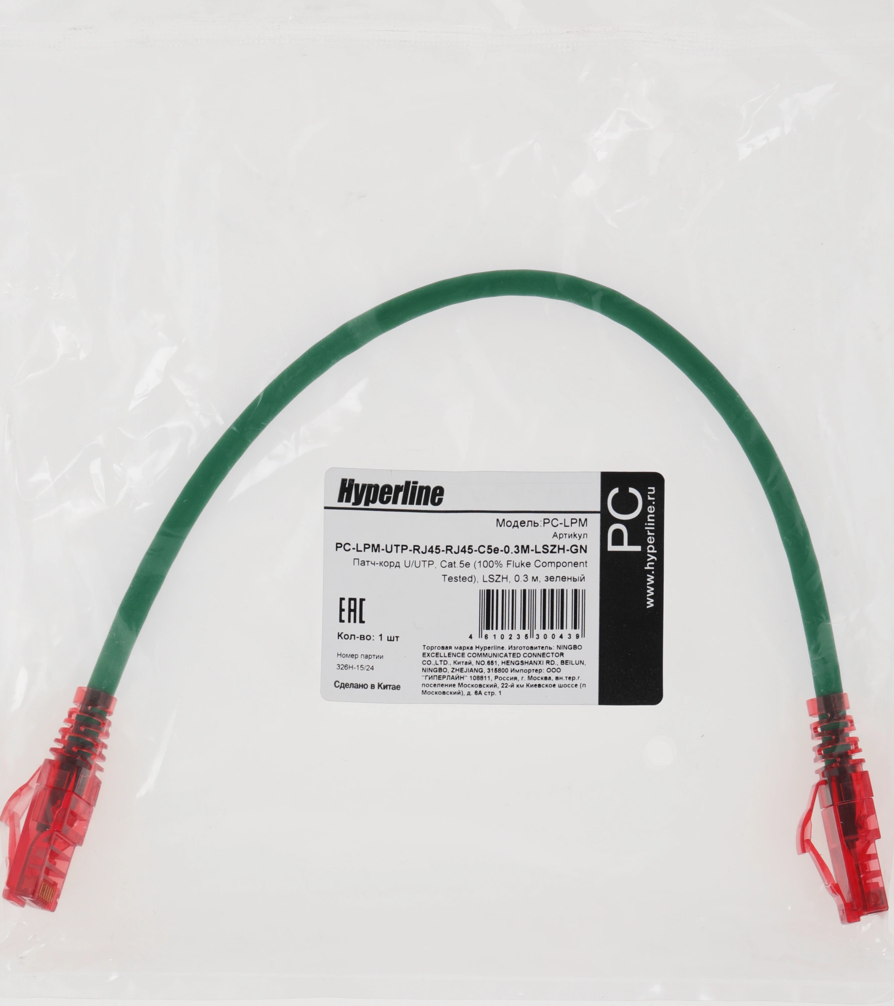 Патч-корд Hyperline PC-LPM-UTP-RJ45-RJ45-C5e-0.3M-LSZH-GN UTP RJ-45 вил.-вилка RJ-45 кат.5E 0.3м зеленый LSZH 24AWG