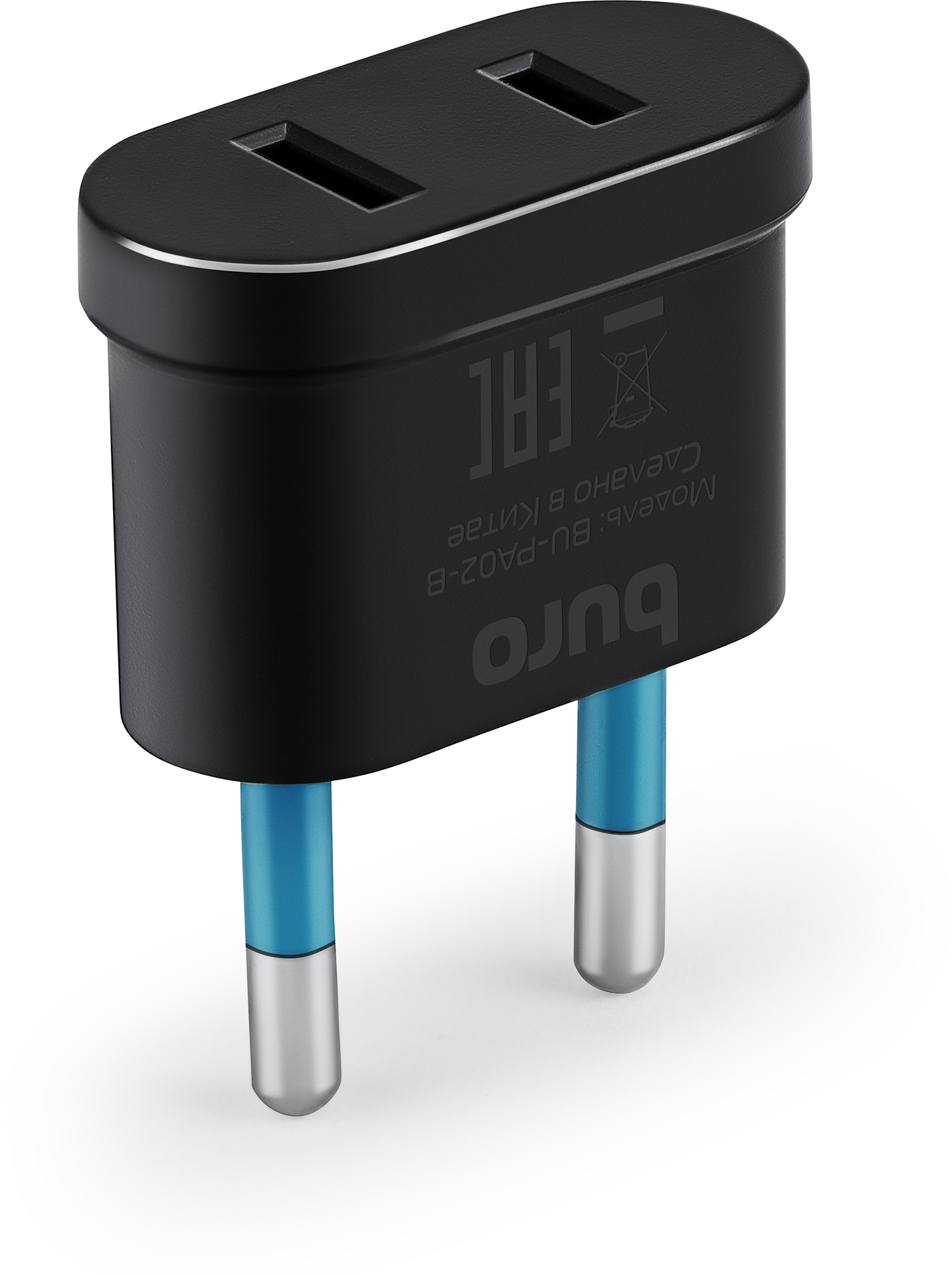 Адаптер-переходник Buro BU-PA02-B (1 розетка) черный (пакет ПЭ)
