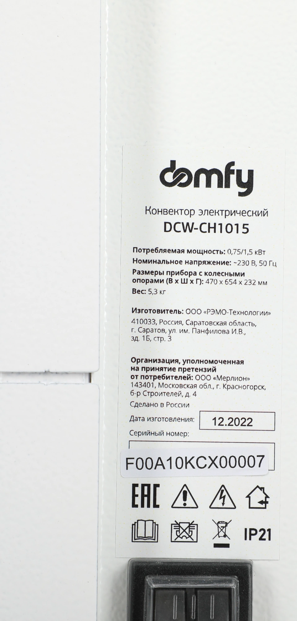Конвектор Domfy DCW-CH1015 1500Вт белый