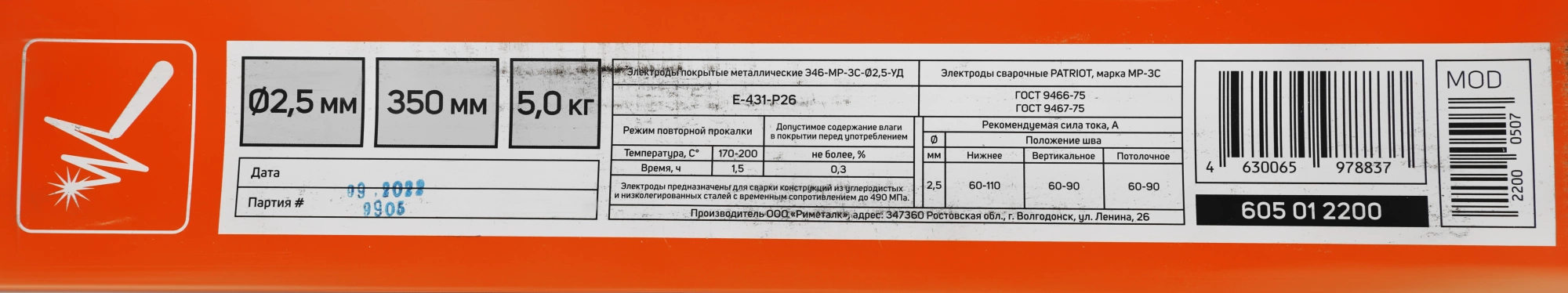 Электрод Patriot 605012200 D2.5мм L350мм 5гр серый