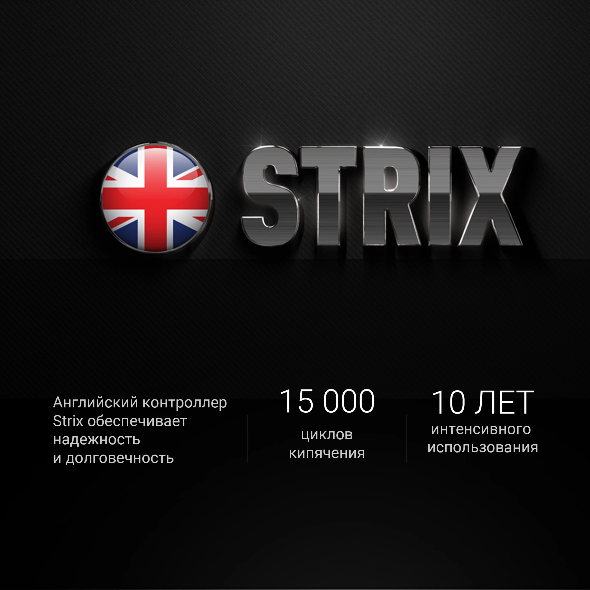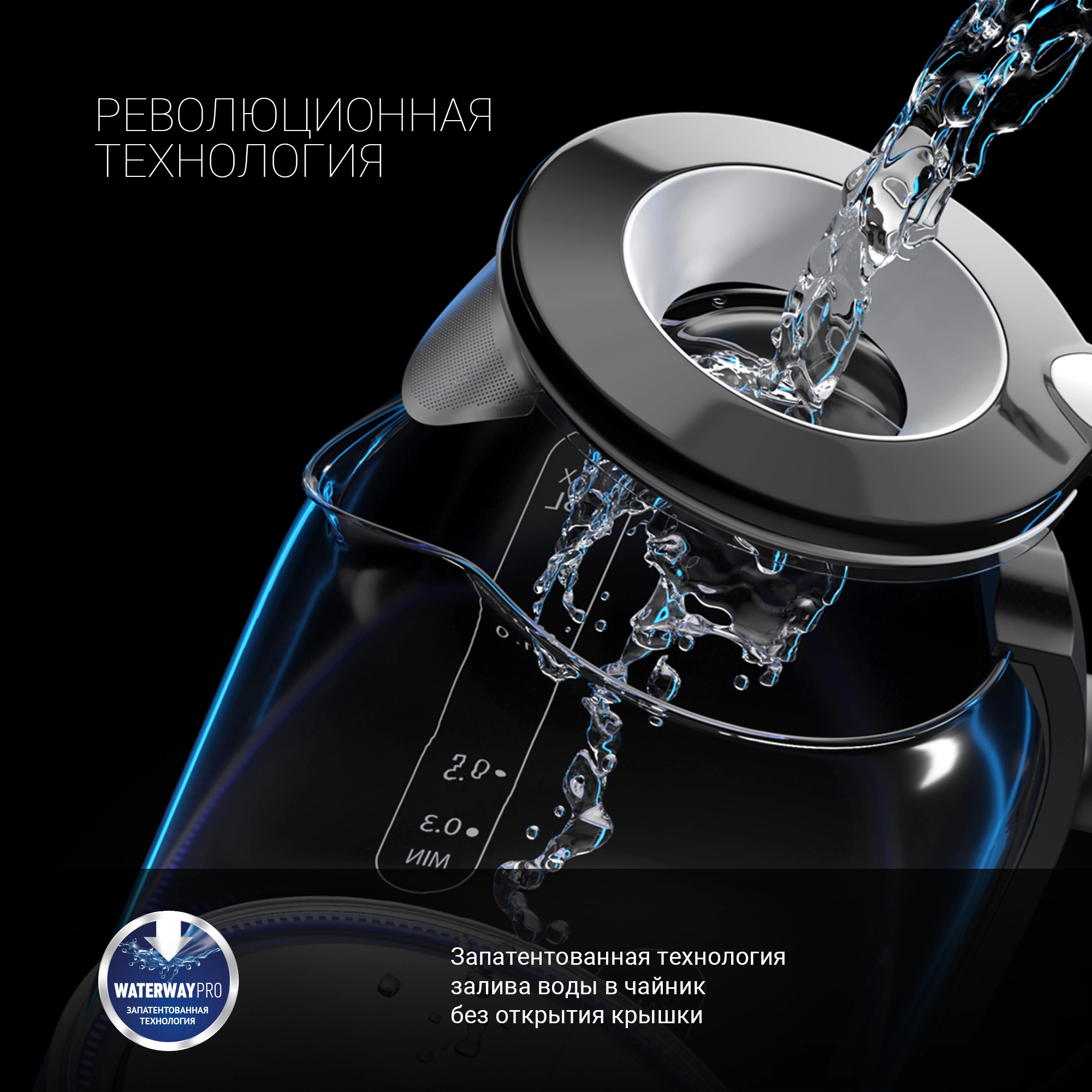 Запатентованная технология "WATERWAY PRO" – удобный залив воды без открытия крышки. Инновационная сталь на дне чайника. Максимально легкая очистка. Английский контроллер STRIX: 15 000 циклов кипячения, что равно 10 годам интенсивного использования.