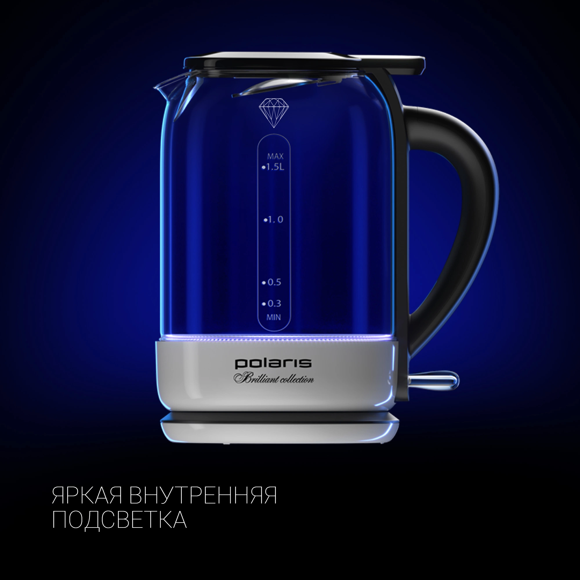 Чайник электрический Polaris PWK 1753CGL 1.5л. 1950Вт белый/черный корпус: стекло/пластик