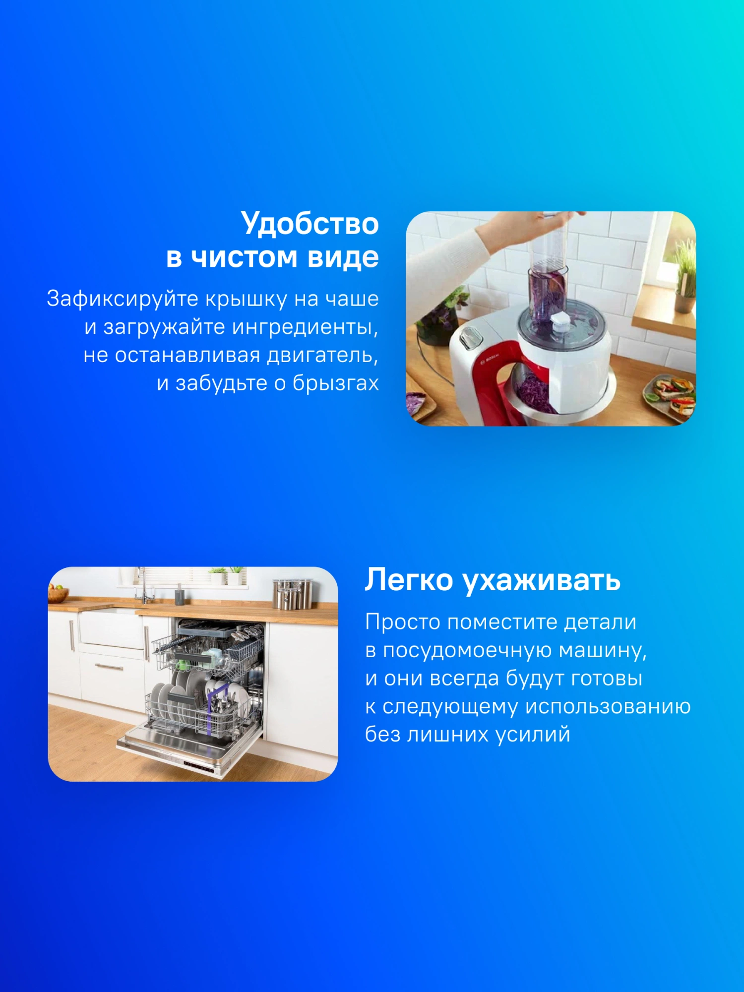 - Прочие функцииПростой и удобный в использовании благодаря функции автоматического поднятия рычага EasyArmLift. Функция автопарковки упрощает процесс смены насадок. Блендер тритан 1,25л. Прозрачная крышка с загрузочным отверстием.