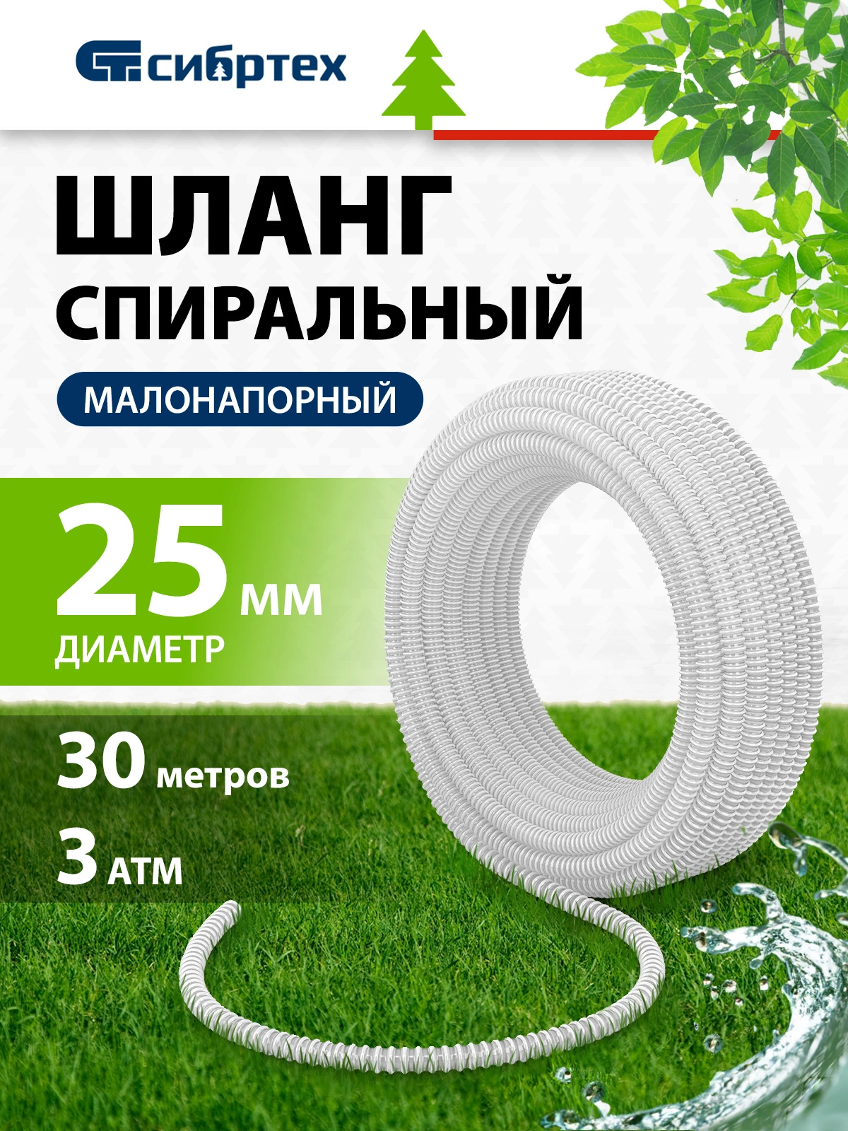 Шланг Сибртех 67310 30м спиральный армированный белый